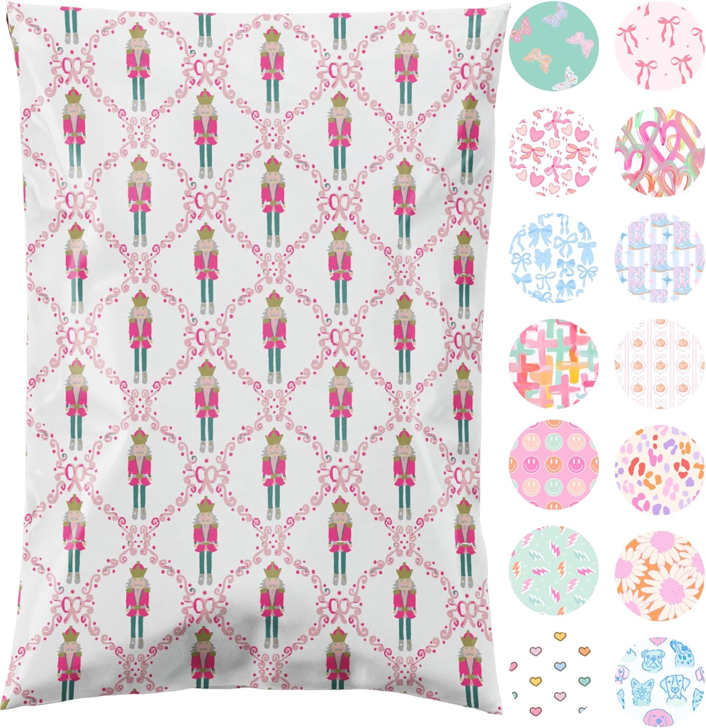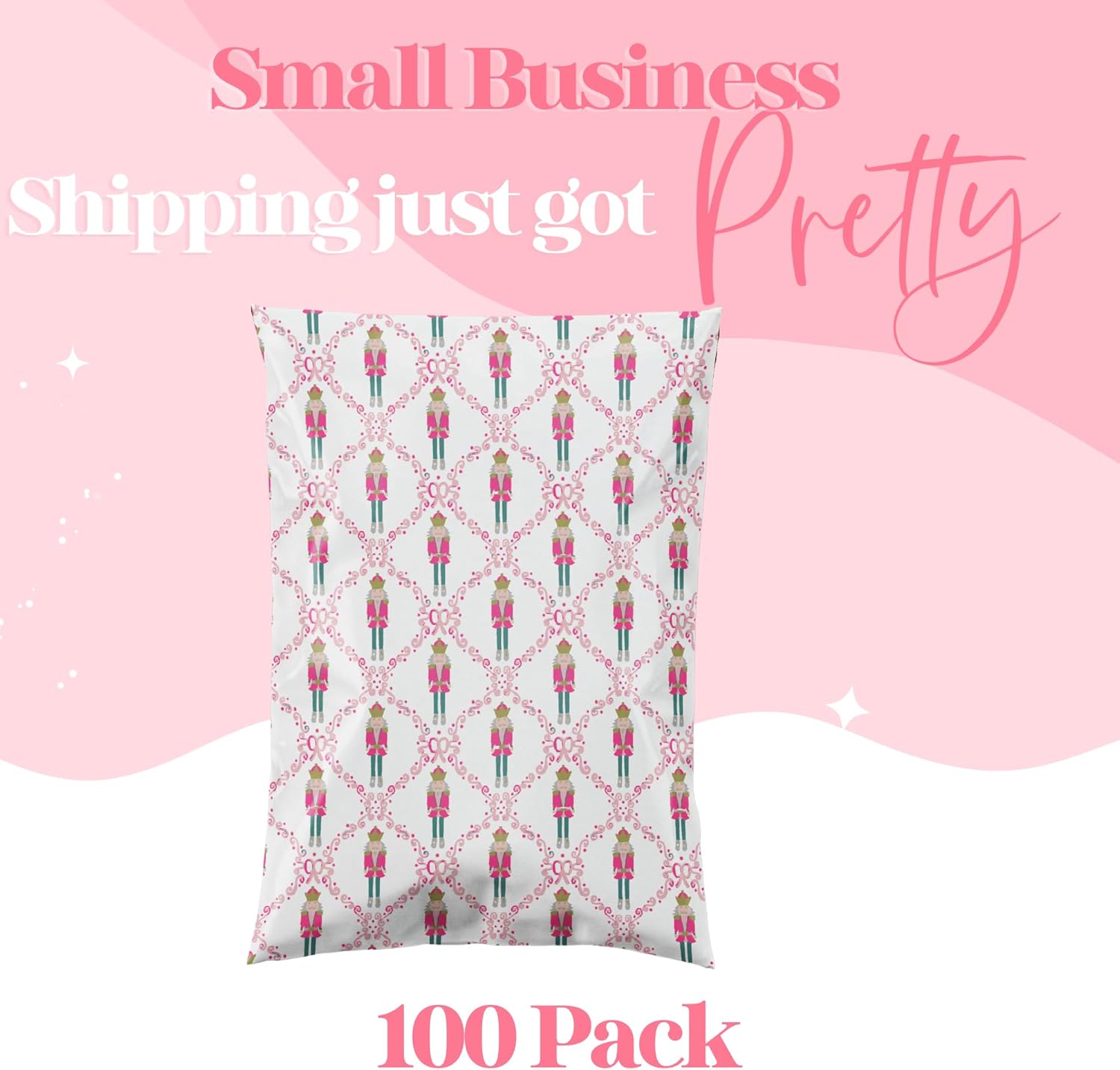 10x13 Designer Poly Mailer 100 Pack Heavy Duty Waterproof Self Seal Shipping Bags for Small Business Large Mailing Envelopes Bulk Tear Resistant Packaging Pink Nutcracker Christmas Holiday