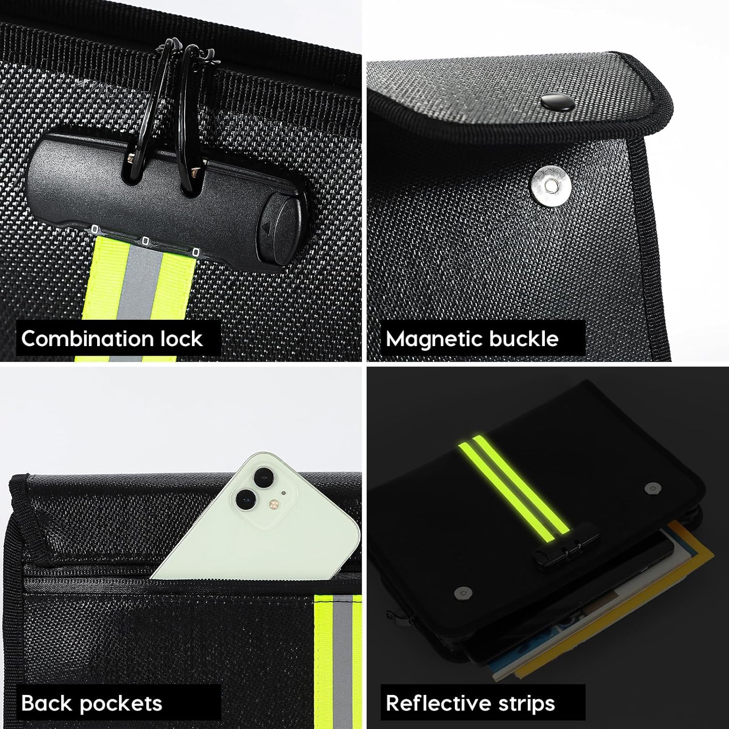 - 5200°F Fire Protection:Made with 8 layers of fireproof insulation, this fireproof document bag can withstand temperatures up to 5200°F, giving you plenty of time to rescue your important documents and valuables from a fire