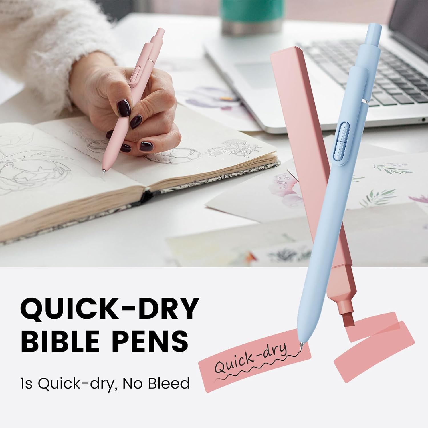- 12 Pack Pens Set: This pens set includes 6 pcs gel pens black ink + 6 pcs Aesthetic Highlighters, no matter of bible, journaling, planner, note taking or daily writing, enough to meet your daily use or replacement needs.