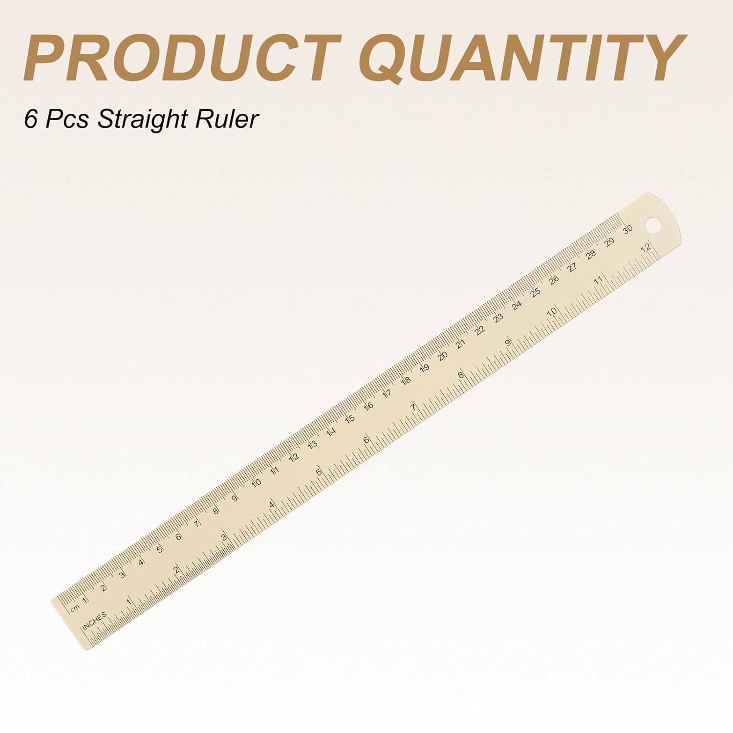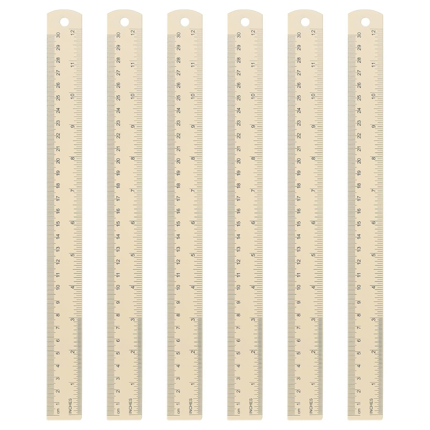 HARFINGTON 6pcs Metal Straight Ruler 30cm Metric SAE Aluminum Alloy Measuring Rulers Scale Tool with Hole for Measure Study Reading Classroom Office, Beige