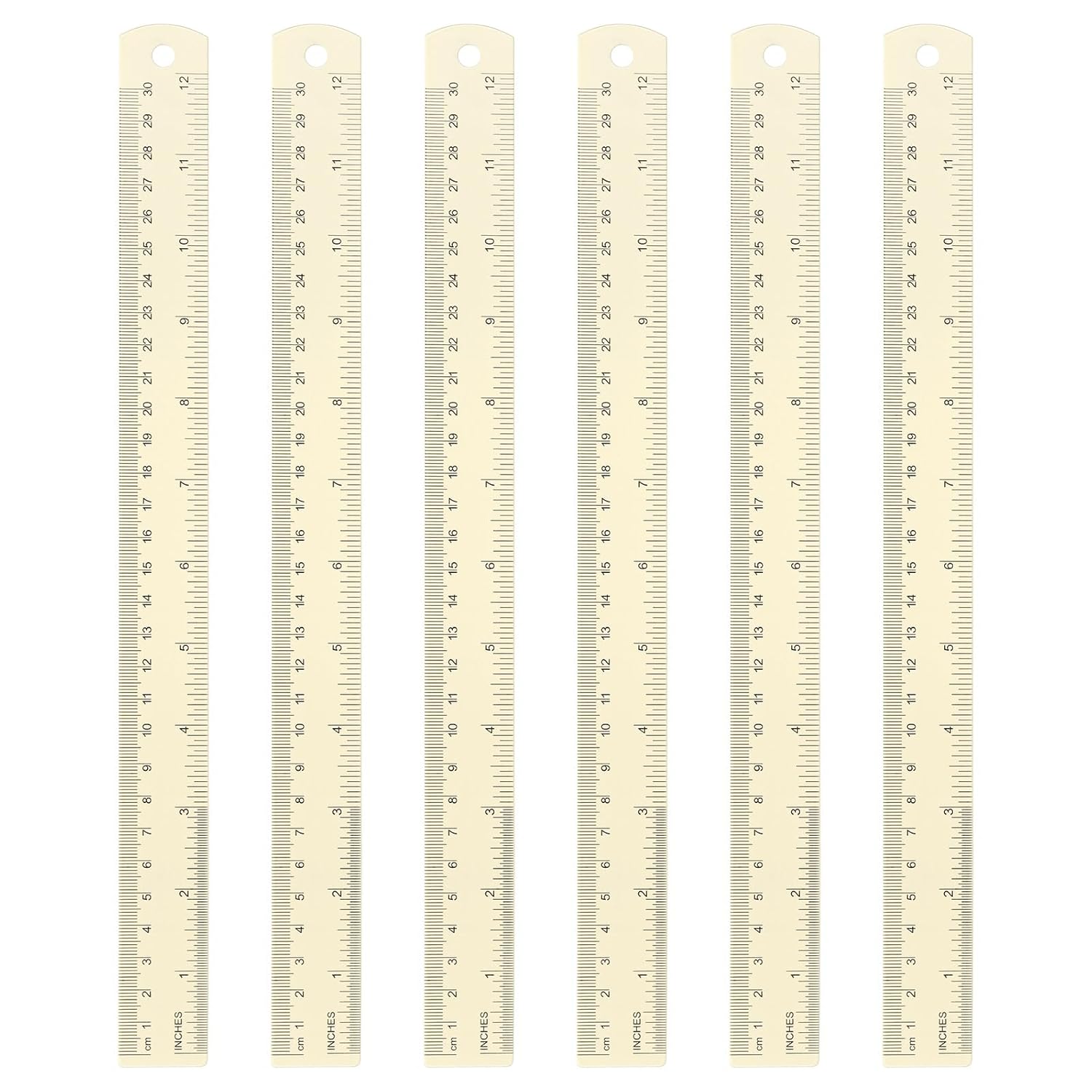 HARFINGTON 6pcs Metal Straight Ruler 30cm Metric SAE Aluminum Alloy Measuring Rulers Scale Tool with Hole for Measure Study Reading Classroom Office, White