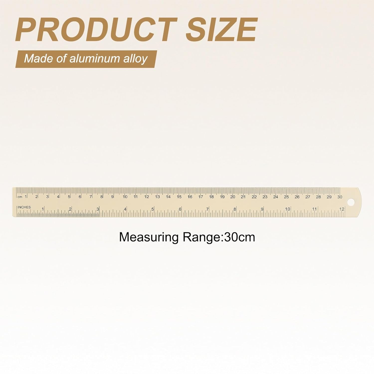 HARFINGTON 4pcs Metal Straight Ruler 30cm Metric SAE Aluminum Alloy Measuring Rulers Scale Tool with Hole for Measure Study Reading Classroom Office, Beige
