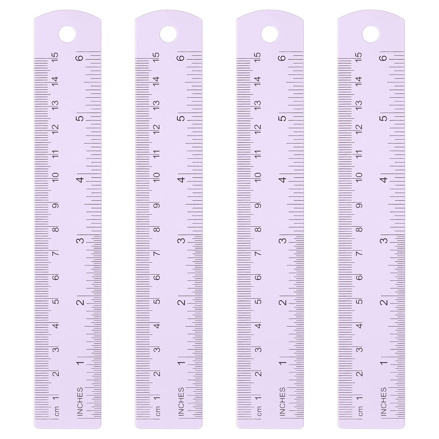HARFINGTON 4pcs Metal Straight Ruler 15cm Metric SAE Aluminum Alloy Measuring Rulers Scale Tool with Hole for Measure Study Reading Classroom Office, Purple
