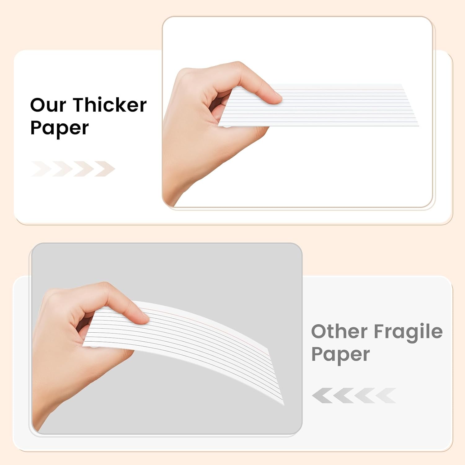 - PREMIUM INDEX CARD: The small index cards 3x5 are made from 160GSM weight paper and are not easy to tear. It won't let ink pass through and is a suitable choice for writing with pencil, ink pens, gel pens or highlighters, and markers. If you need it for making recipes or a thicker index card, please do not choose it.