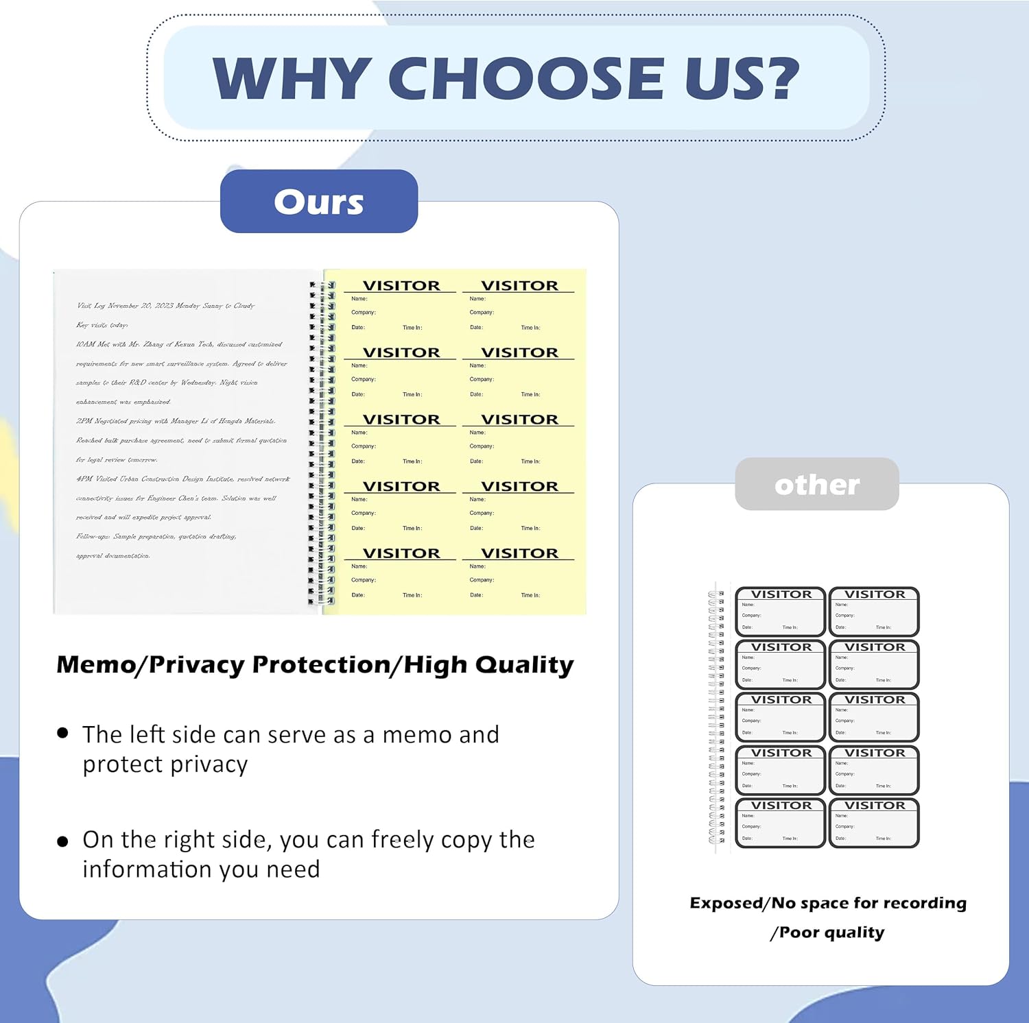- Convenient Flat-Lay Design with Easy Tear Pages:The spiral-bound layout allows the log book to lie completely flat, making it more comfortable for visitors to fill out their information. Sticker pages are perforated for easy tear-off, allowing you to remove and organize them effortlessly after writing.