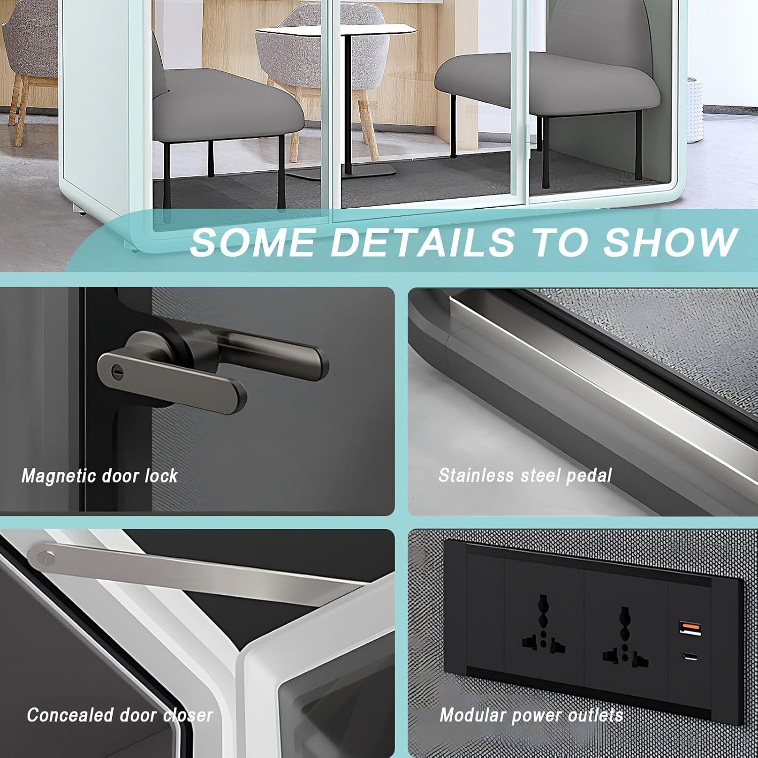 - Practical Details: universal casters can easily move the soundproof cabin to anywhere you want, and magnetic door locks can protect privacy, ensuring convenience of use and sealing of space.