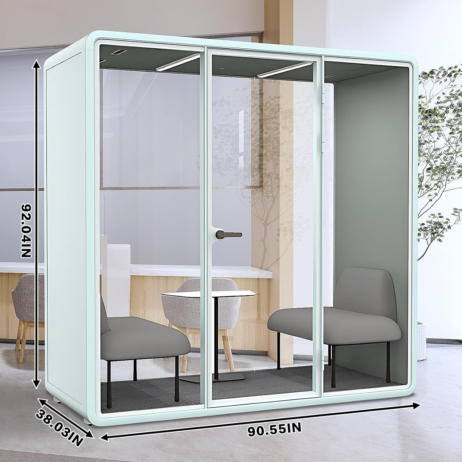 - Space Utilization: The internal space layout is reasonable and can accommodate two people to communicate comfortably. It is suitable for flexible layout of open office areas and leisure places, efficient use of space, and creating private corners.