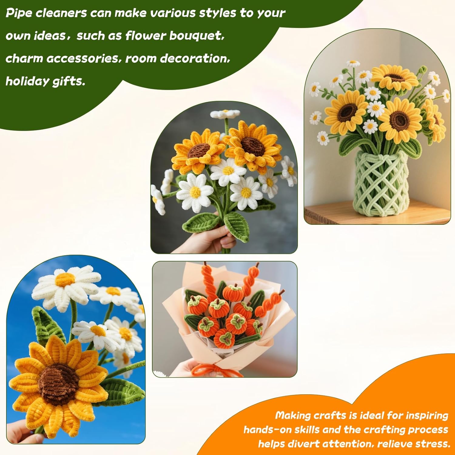 - 🌻【Pipe cleaner crafts kit】 Endless Creative Possibilities ,it easy to cut, twist and bend into Charm accessores,flower bouquet,DIY Bag keychain,room decoration,holiday gifts,entertainment activities. Ideal for kids' crafts & adult stress relief,it can share your creations with kids and loved ones.