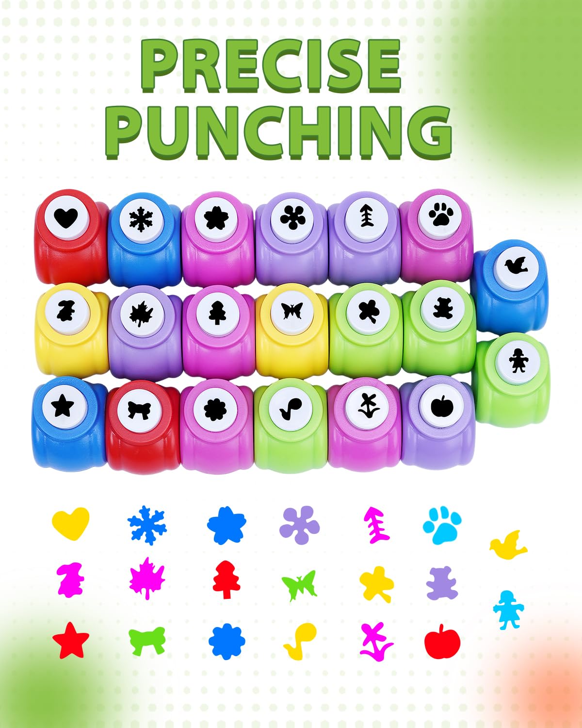 - Paper Punch Shapes: Hole punch set include 20pcs different mini hole puncher: maple leaf, snowflake, different flower, Christmas tree, four-leaf clover, heart, star, paw print, boy, butterfly, Bow, bear, music note, tulip, apple, fish, bird & girl. Punches for paper crafts could cut out a pattern about 0.31 inches in size