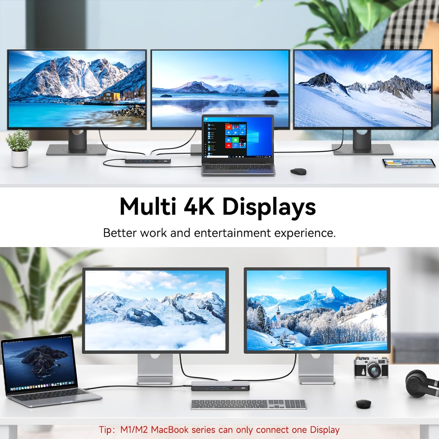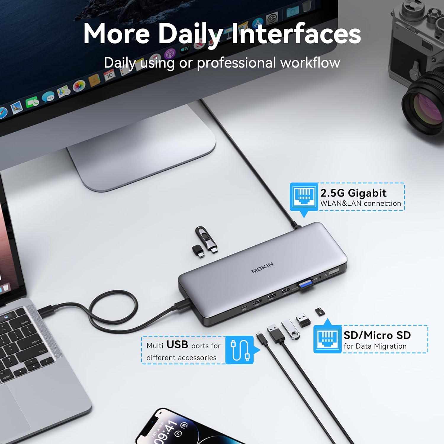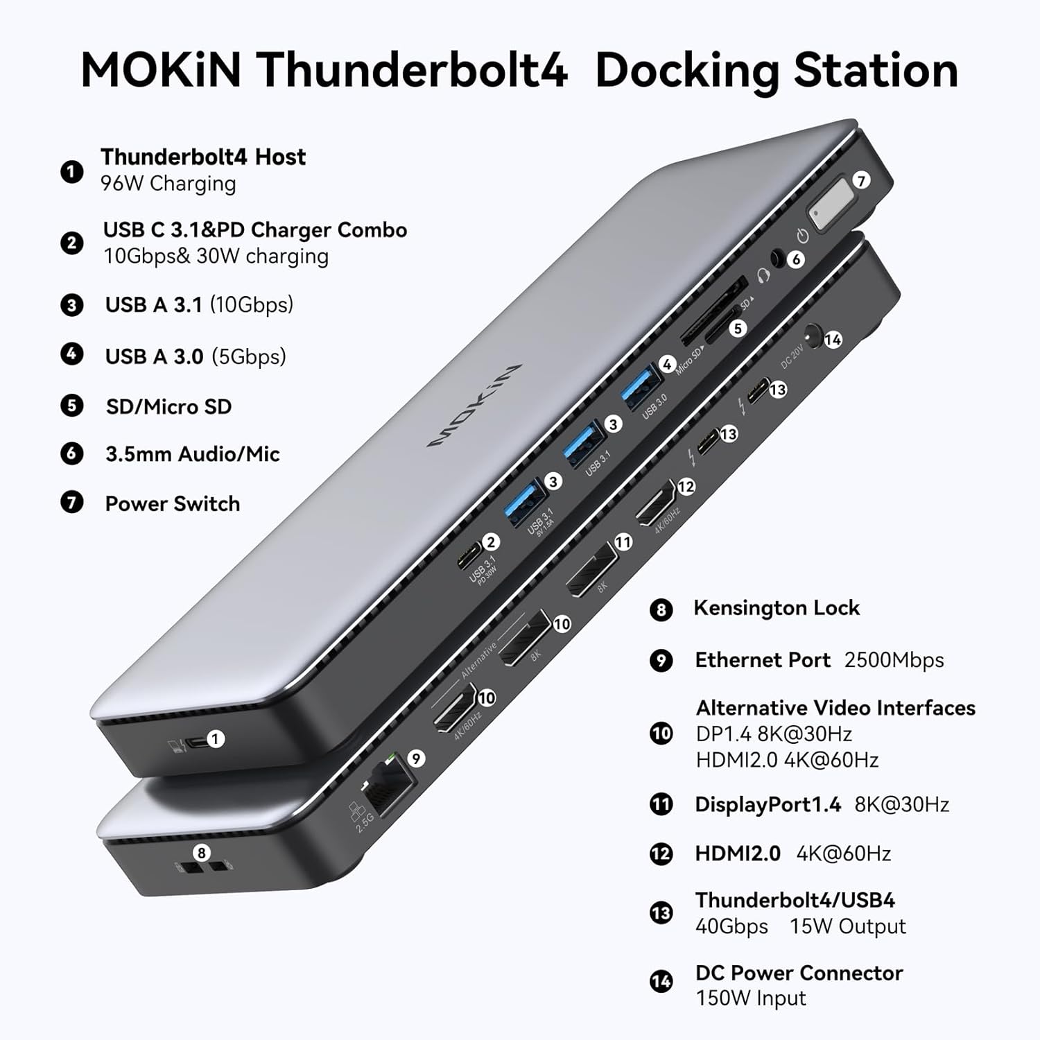MOKiN Thunderbolt 4 Dock - 16 Ports, USB C Docking Station 3 Monitors for Laptop with 2*Thunderbolt 4 Port, 96W Charger, 2.5Gbps Ethernet for Dell, HP, Lenovo, MacBook(Intel Thunderbolt™ Certified)