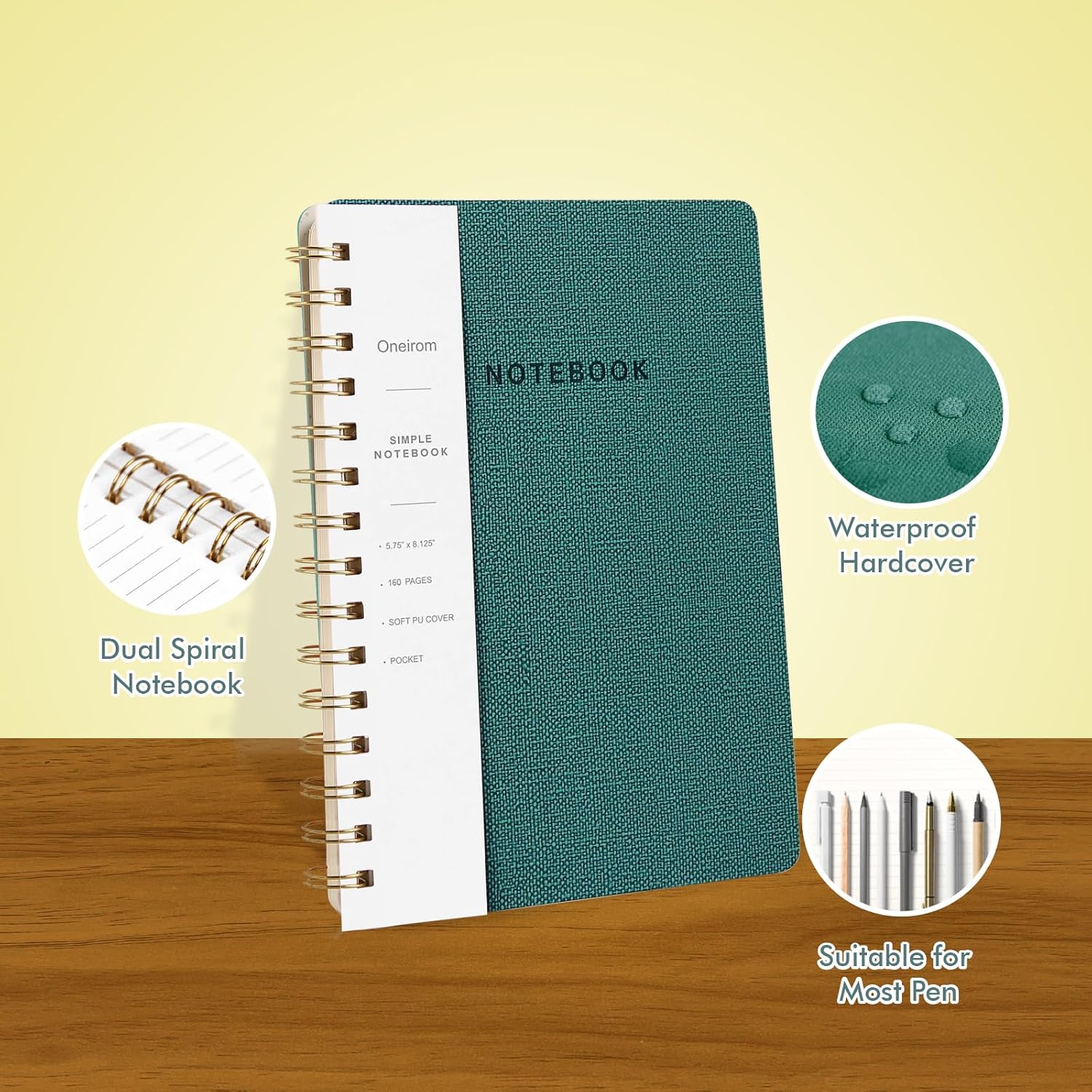 - Durable and Elegant Design: The Oneirom Spiral Notebook features a premium PU leather cover, twin-wire binding provides a sturdy construction, allowing the notebook to lay flat for easy writing. The water-resistant cover protects your notes from spills and damage, making it a reliable choice for daily use