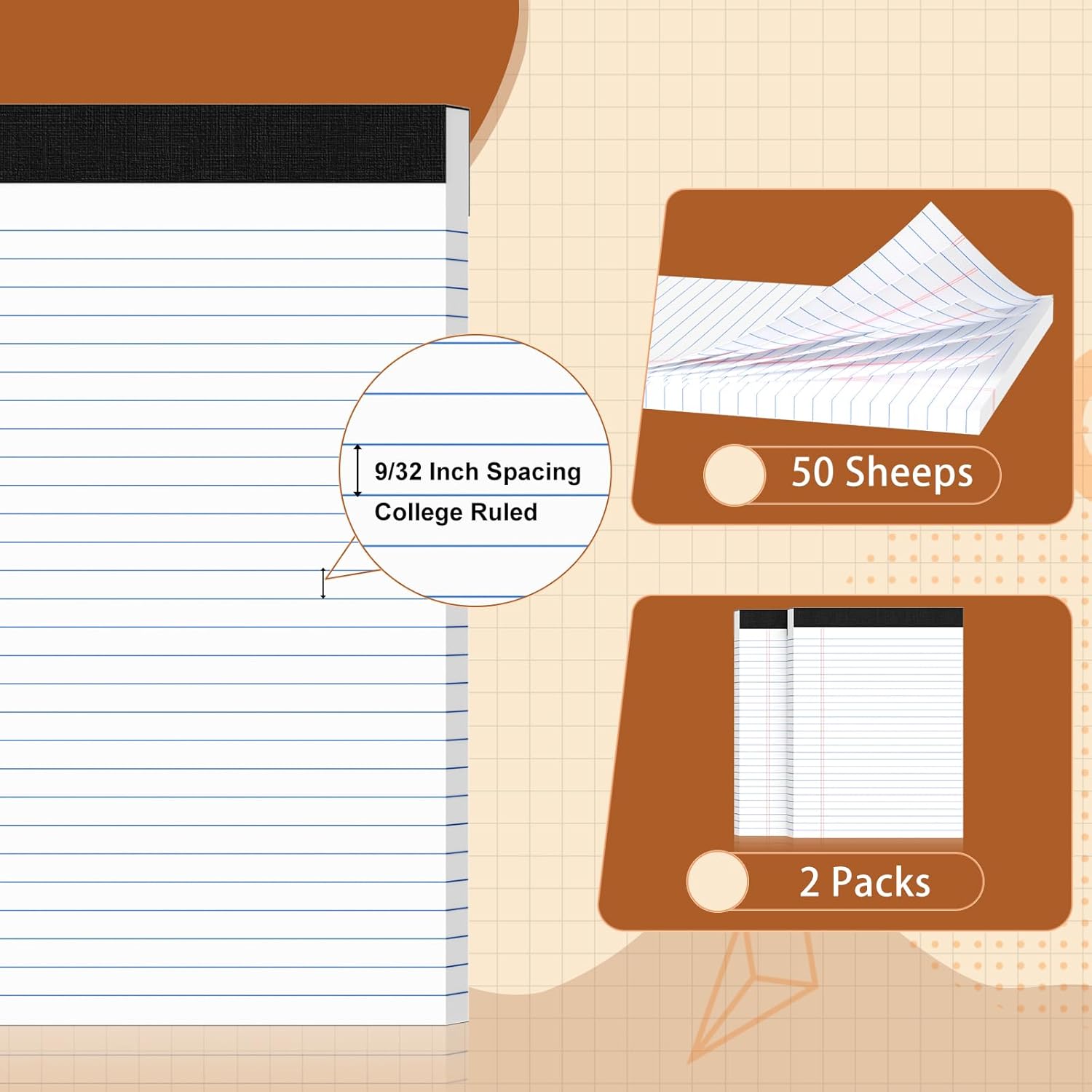 - College Ruled Notepad: These note pads have 7mm line spacing, making them perfect for writing legible notes that are easy to read. This ensures that your notes are organized and easy to follow.