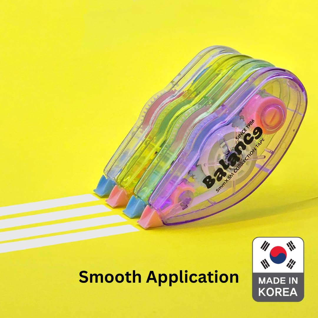 Balance Correction Tape – Instant Dry White Out Tape for Smooth, Precise Corrections | Korea’s #1 Manufacturer | Office & School Supplies | 5mm x 5m (0.19 in x 5.47 yds) | 10 Pack