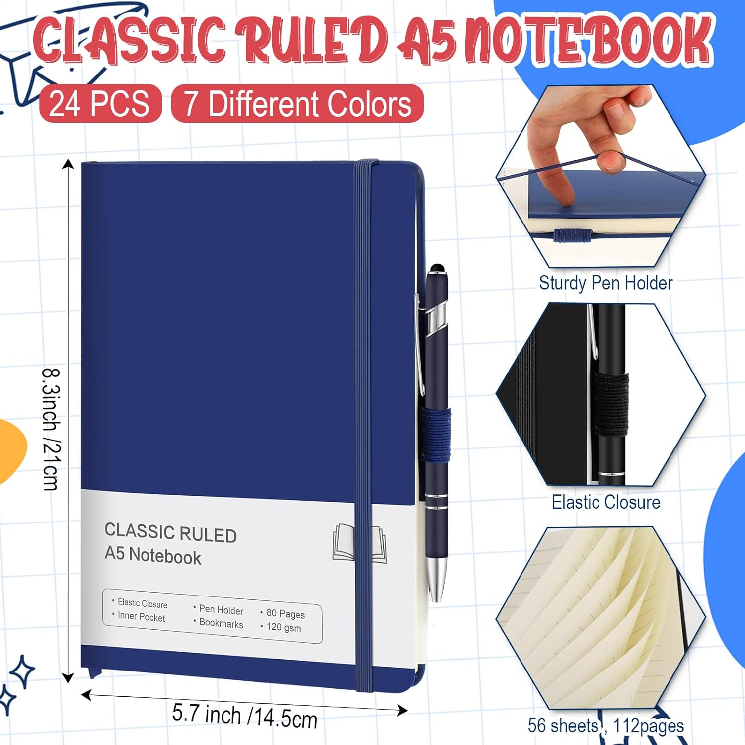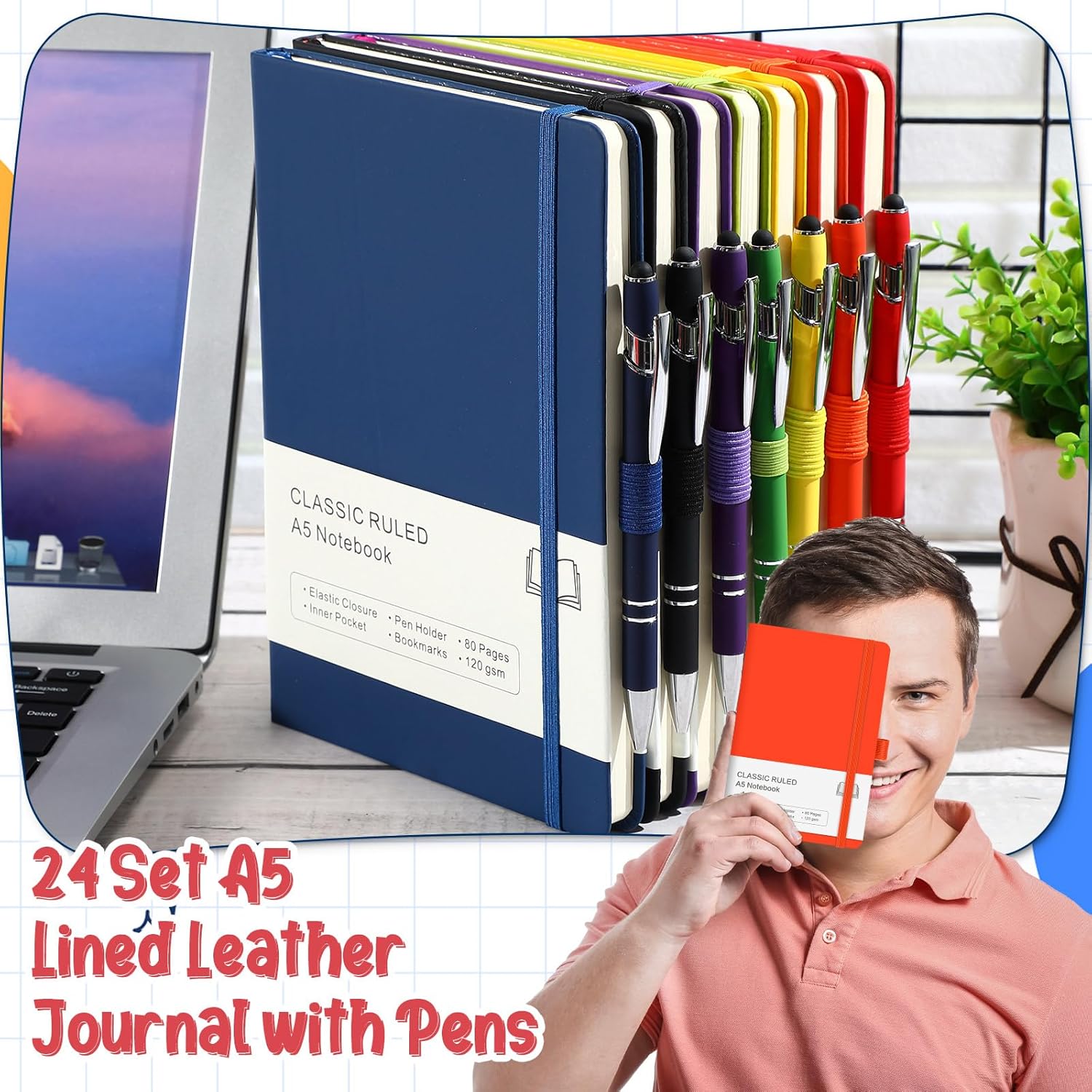 - Package Include: you will receive 24 pack journaling notebooks with sturdy cover and 24 pcs multicolor retractable pen; Each notebook size is about 8.3 x 5.1 inch, A5 size; These black ink writing pens can be clipped in the notebook pen holder, suitable for young girls and boys to carry and hold easily