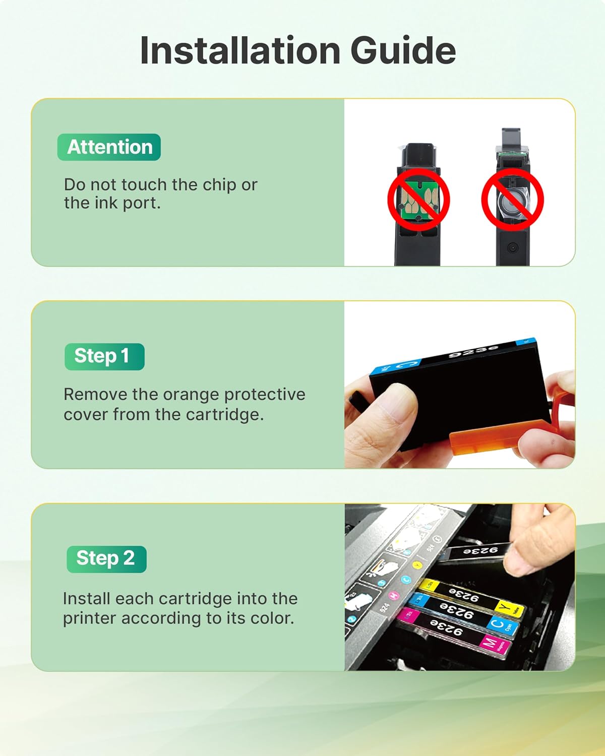 - 𝐇𝐢𝐠𝐡 𝐏𝐚𝐠𝐞 𝐘𝐢𝐞𝐥𝐝: Up to 1000 pages for each 923XL black ink cartridges and 800 pages each 923XL color ink cartridge(5% coverage of A4)