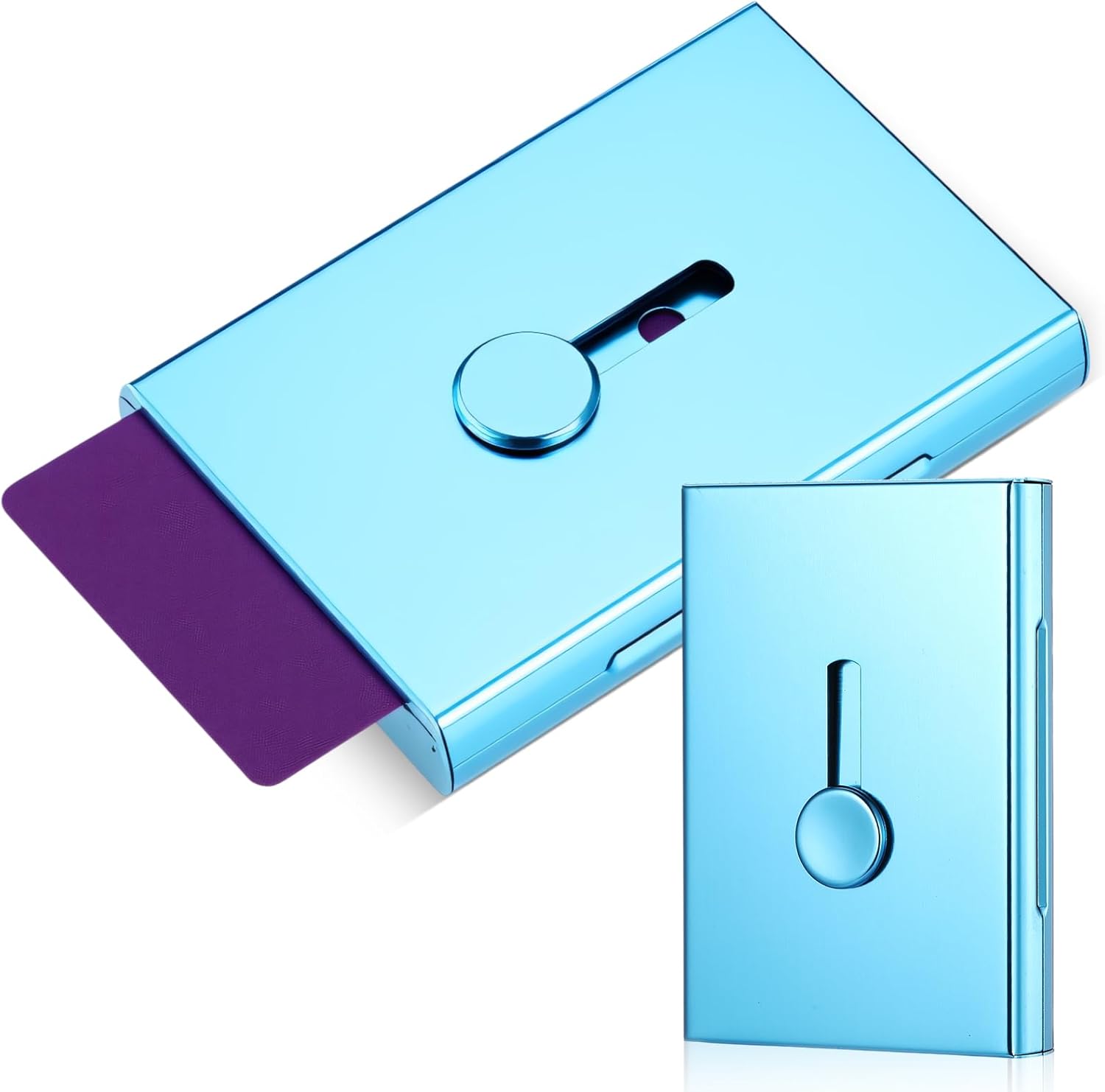 Zonon Large Thumb Drive Business Card Holder Fit 28 Name Credit Aluminum Alloy Slide out Name Card Case Portable Business Holder Wallet Pocket for Men Women (Sapphire Blue)