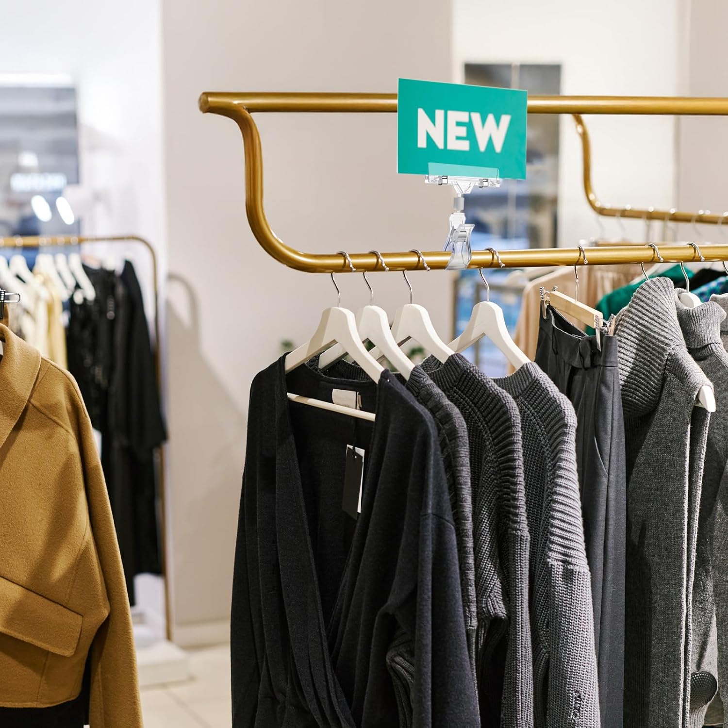 - 【Double Clip Design (360° Rotatable)】 Features a base clip (for racks/shelves) and a transverse clip (for signs) connected by a swivel ball joint, allowing full 360° rotation for optimal visibility.