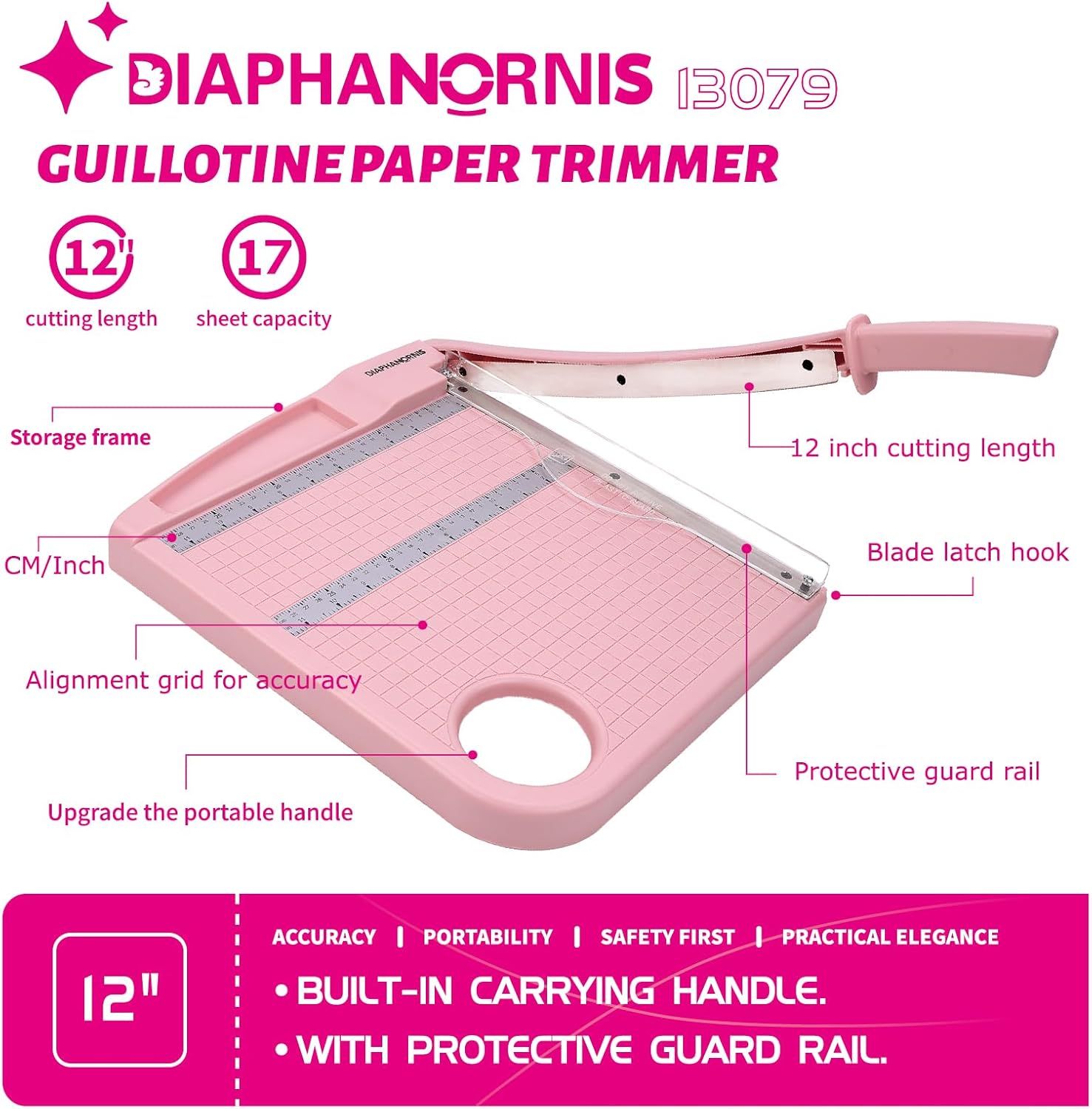 Paper Cutter Trimmer for Office&Crafts, Heavy Duty Guillotine Paper Trimmer with Portable Base Design/Safety Protection and Blade Lock, Paper Cutter 12 Sheets, Cardstock/Laminate (Pink)