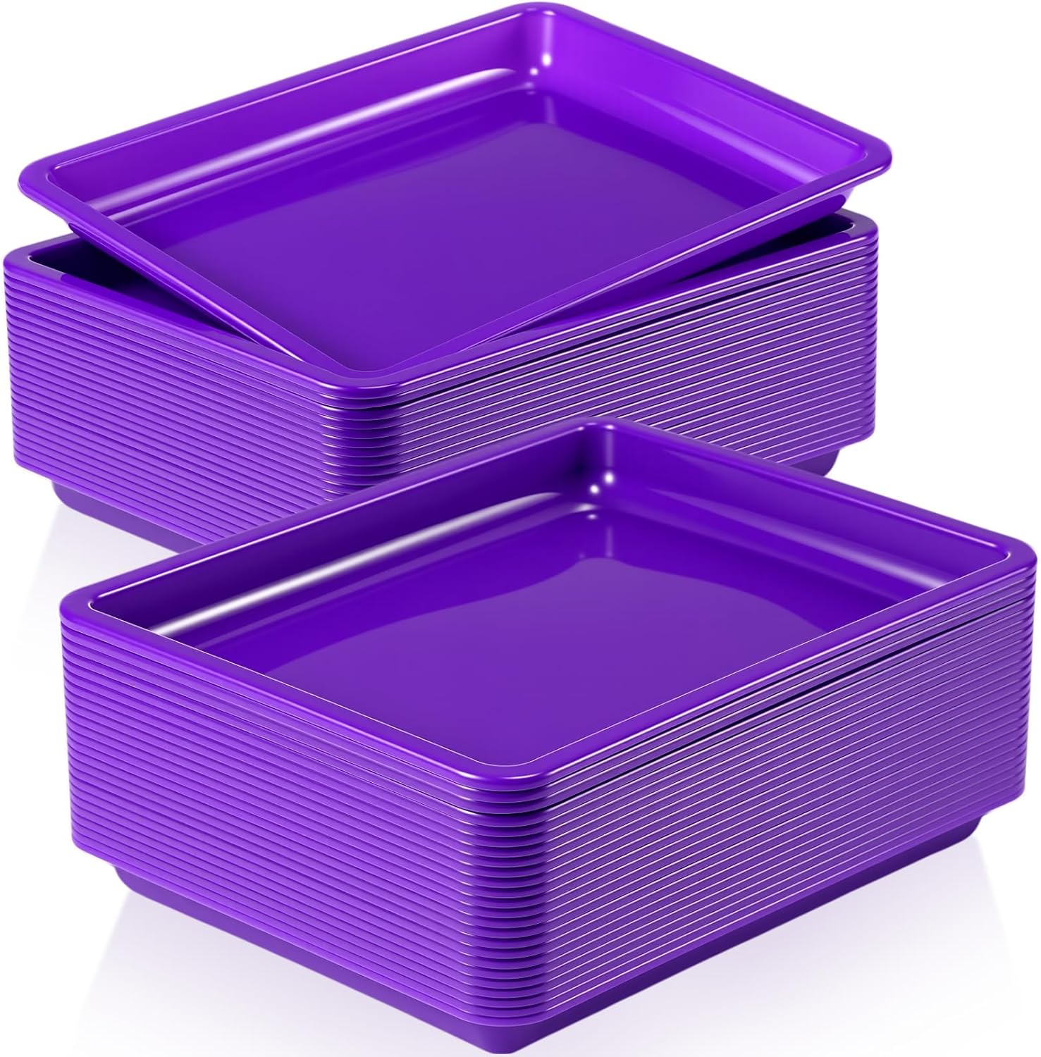 Maitys 24 Pcs Plastic Art Trays 11 x 8.7 x 1 Inch Activity Craft Tray Organizer Serving Tray Stackable Storage Sand Trays for School Painting Beads Crafts DIY Projects(Purple)