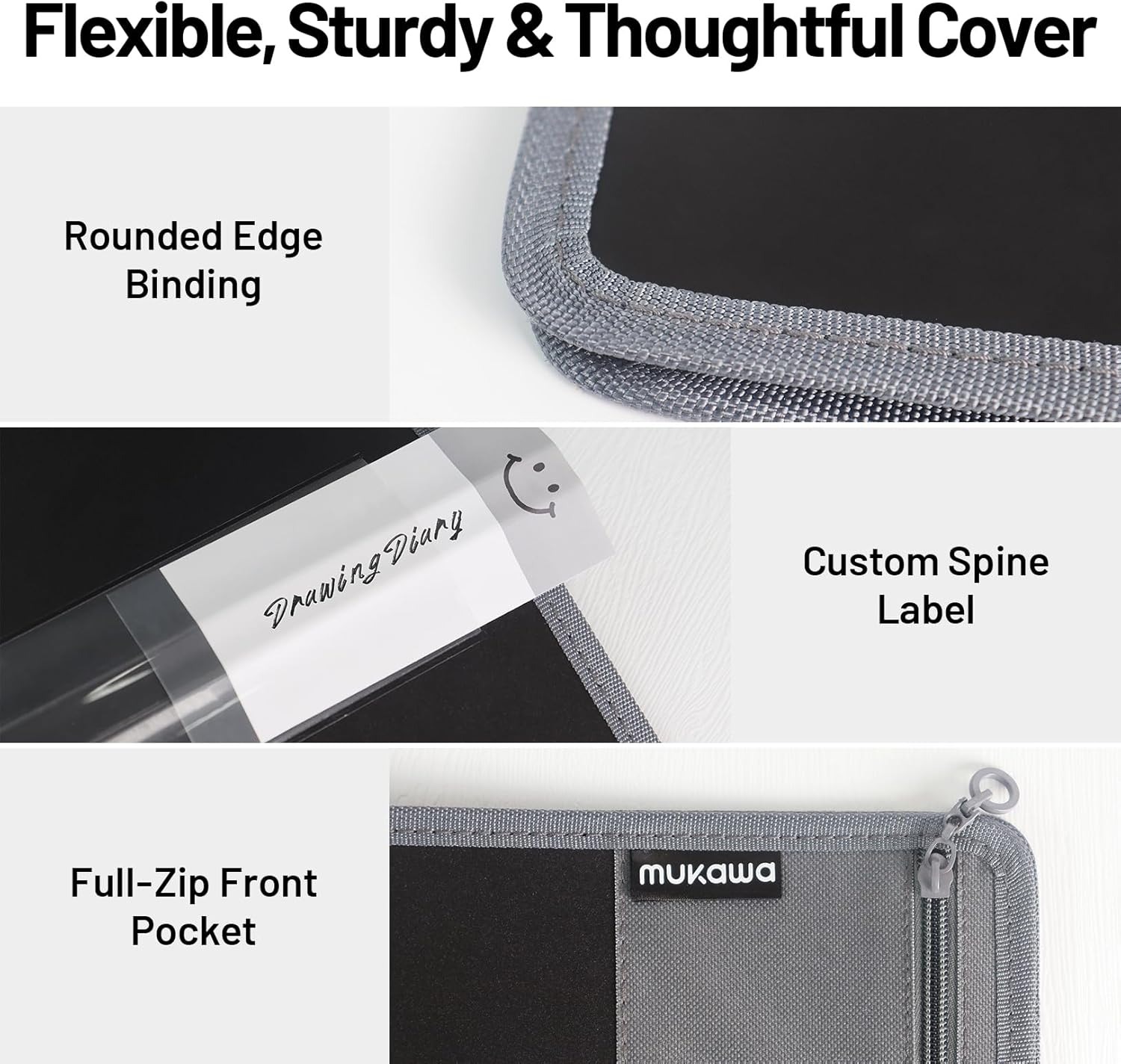 - Thoughtful Design: Front zip pocket keeps tickets, notes, or a pen handy; customizable/writable spine identifies contents; inner cover pocket holds cover inserts and business cards.