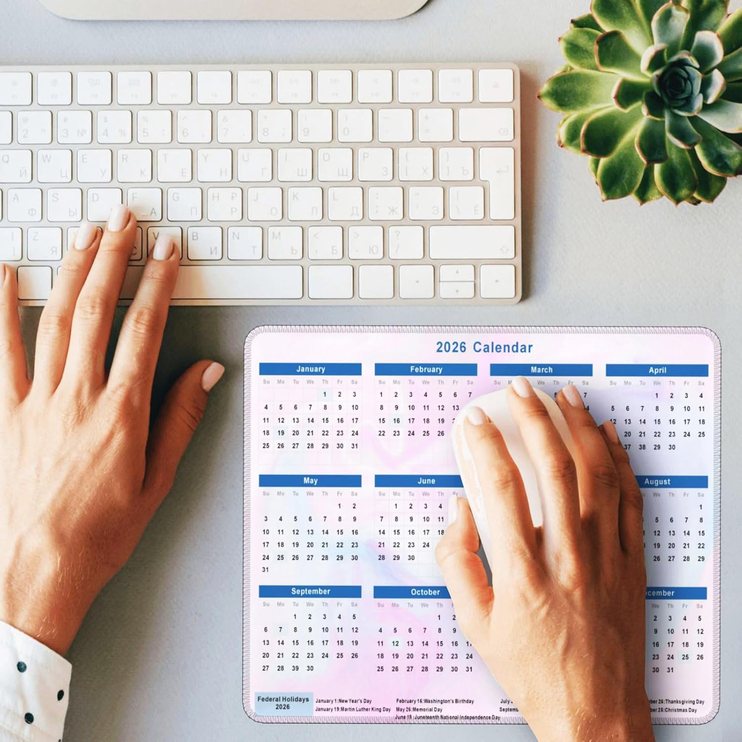 2026 Calendar Mouse Pad, Cute Calendar with Holidays Mouse Pads, Non-Slip Rubber Base Mousepad for Office Desk Computers Laptop