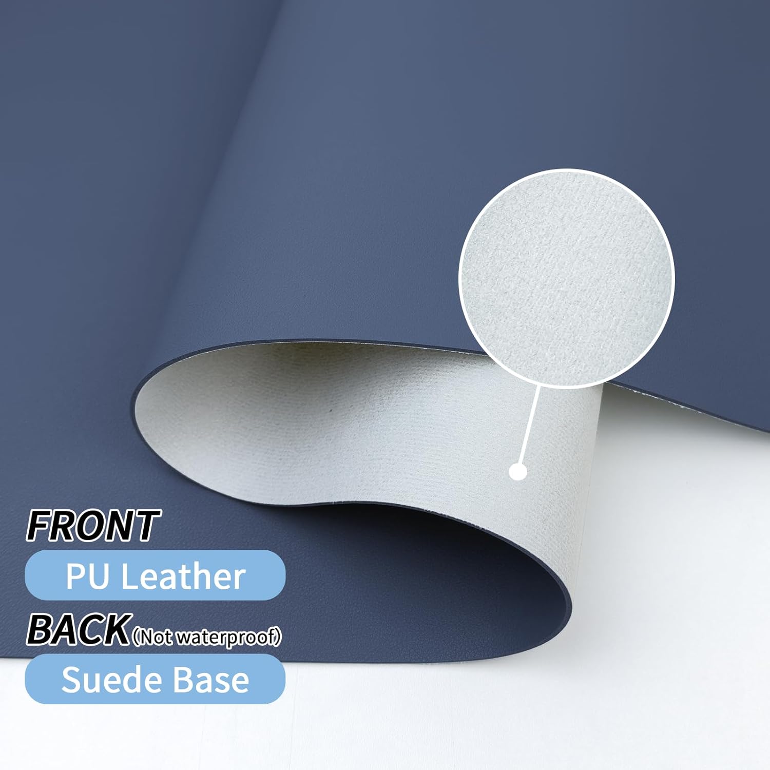 - 【Waterproof & Easy to Clean】The faux leather material desk mat is waterproof and heat resistant, easy to clean. It can perfectly protect your desktop from drinks, ink and other liquids. For cleaning, just wipe its surface stains with a damp cloth. Please note that its suede backing is not waterproof!