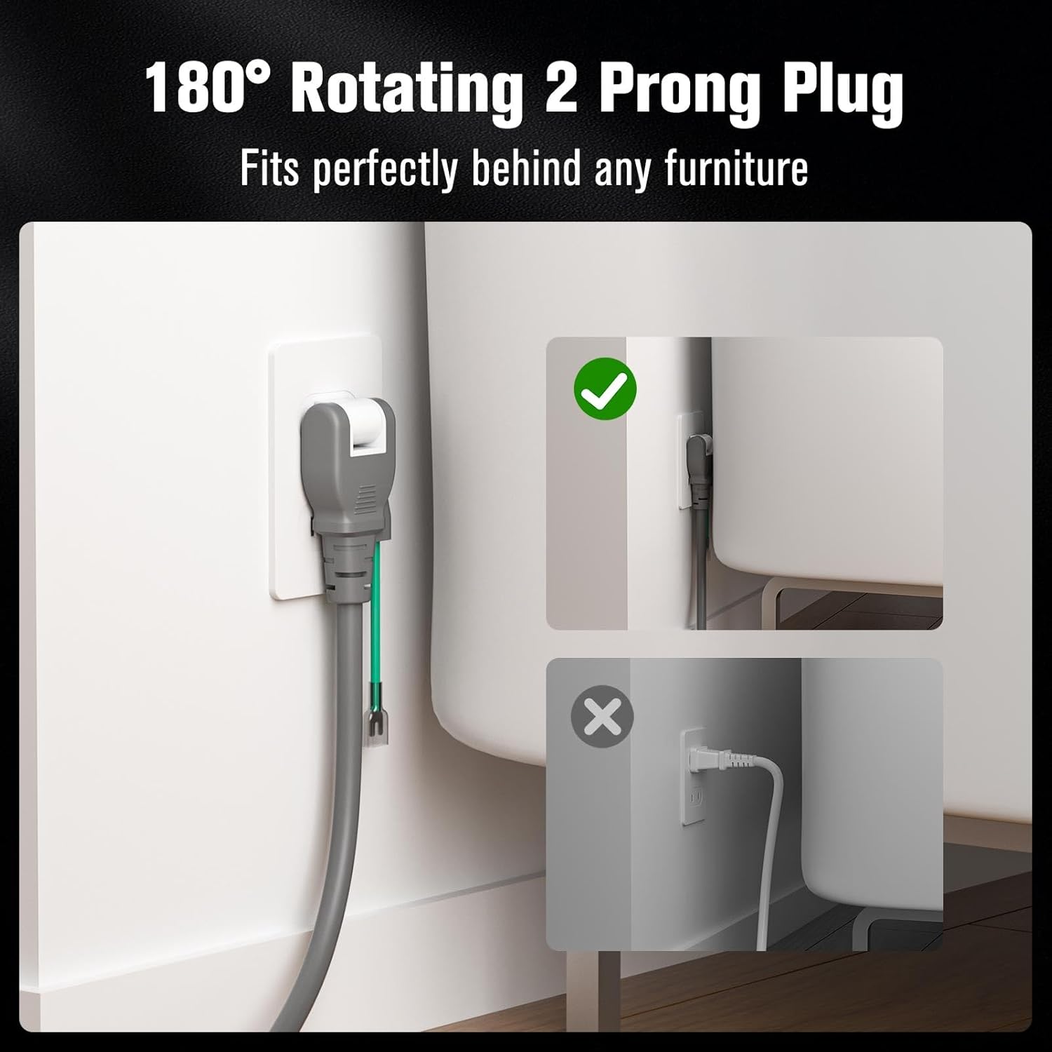 - 【180°Rotating Plug & 10FT Flat Cord】This outlet extender built with a 180° rotating plug can be easily hidden behind any furniture like couch, dresser, wardrobe without wasting every inch of space. 6ft ultra-thin flat extension cord is much thinner than standard round cable, which not only allow it to run smoothly under carpets and door gaps without hurting, also long enough to access to power wherever you need it.