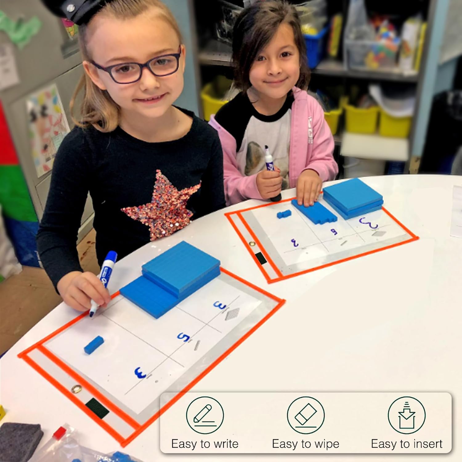 Dry Erase Pockets 30 Pack EASYWipeXL, Oversized 10"×13" Heavy-Duty Reusable Dry Erase Pocket Sleeves, Save Time & Paper with Quick Clear Pocket Sleeves for Classroom, Office & Homeschool Worksheets