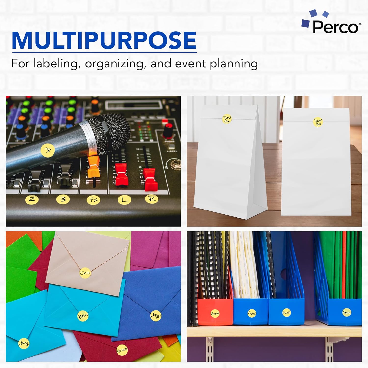 Perco Metallic Gold 1-Inch Perforated Circle Dot Sticker Labels — 10 Rolls, 10,000 Round Stickers — with Permanent Adhesive for Awards, Invitations, Events, Gift Packaging, Crafting — Made in USA