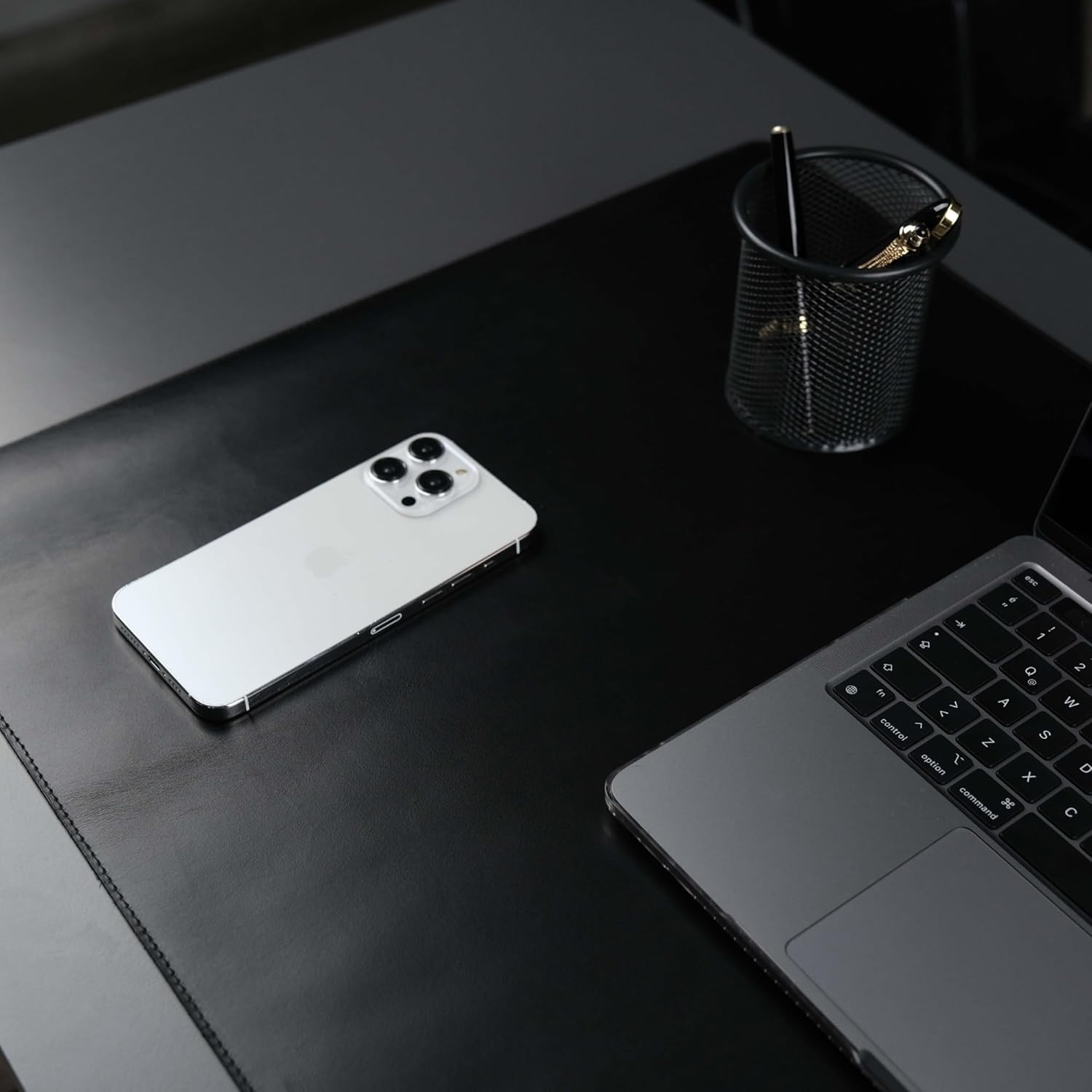 - GENUINE CALFSKIN LEATHER: Handcrafted from authentic full-grain calfskin leather, providing exceptional quality, durability, and a luxurious feel that enhances any workspace.