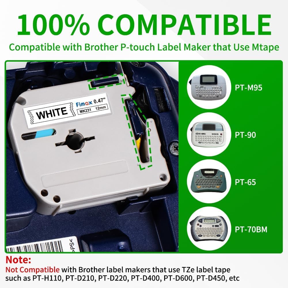 - Compatible: Fimax Replacement for m-k231s 12mm 0.47ft m tape