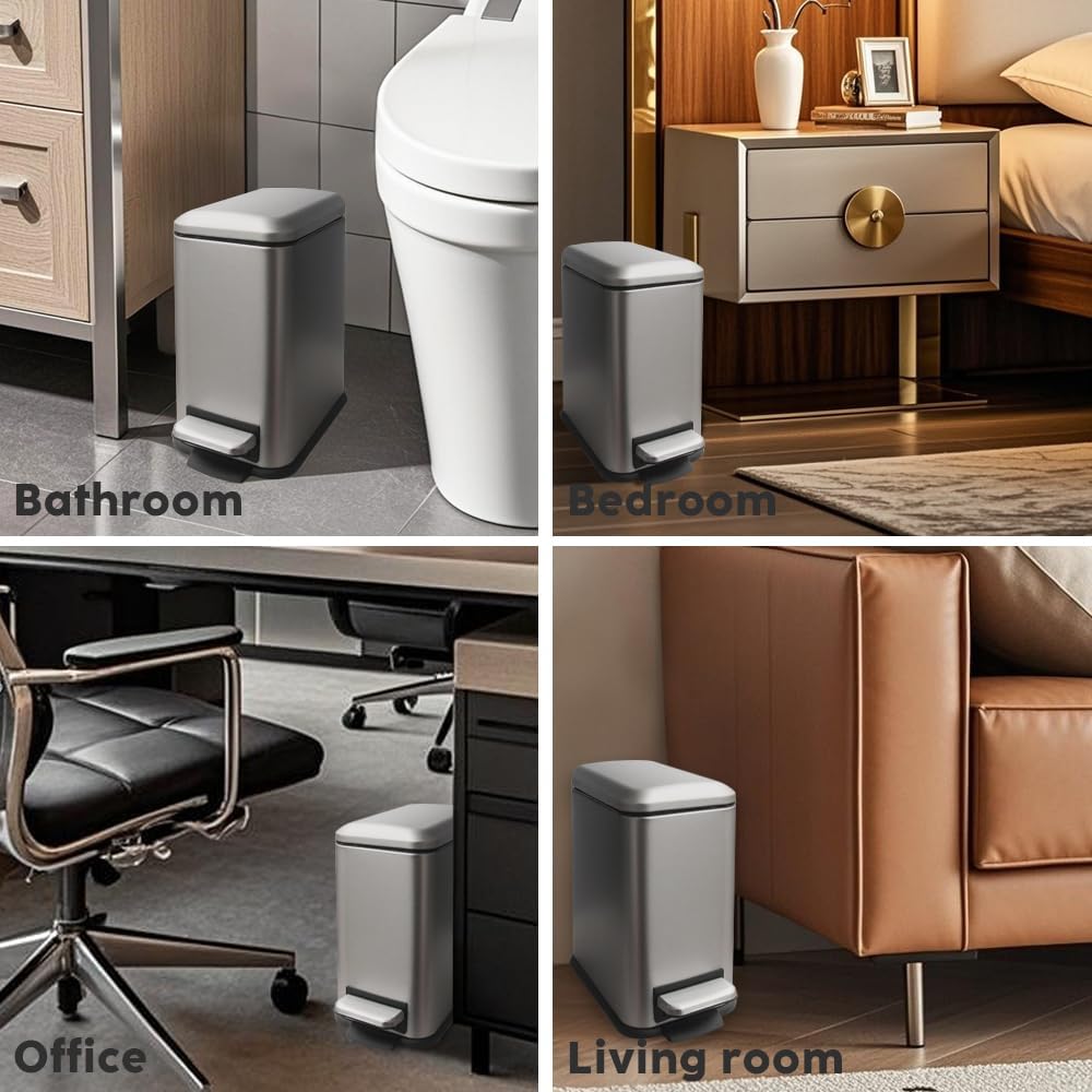 - Space-Saving Design: Perfect for small spaces like kitchens, offices, bedroom and bathrooms, this 1.3 gallon slim trash can fits seamlessly into tight corners without compromising on functionality.