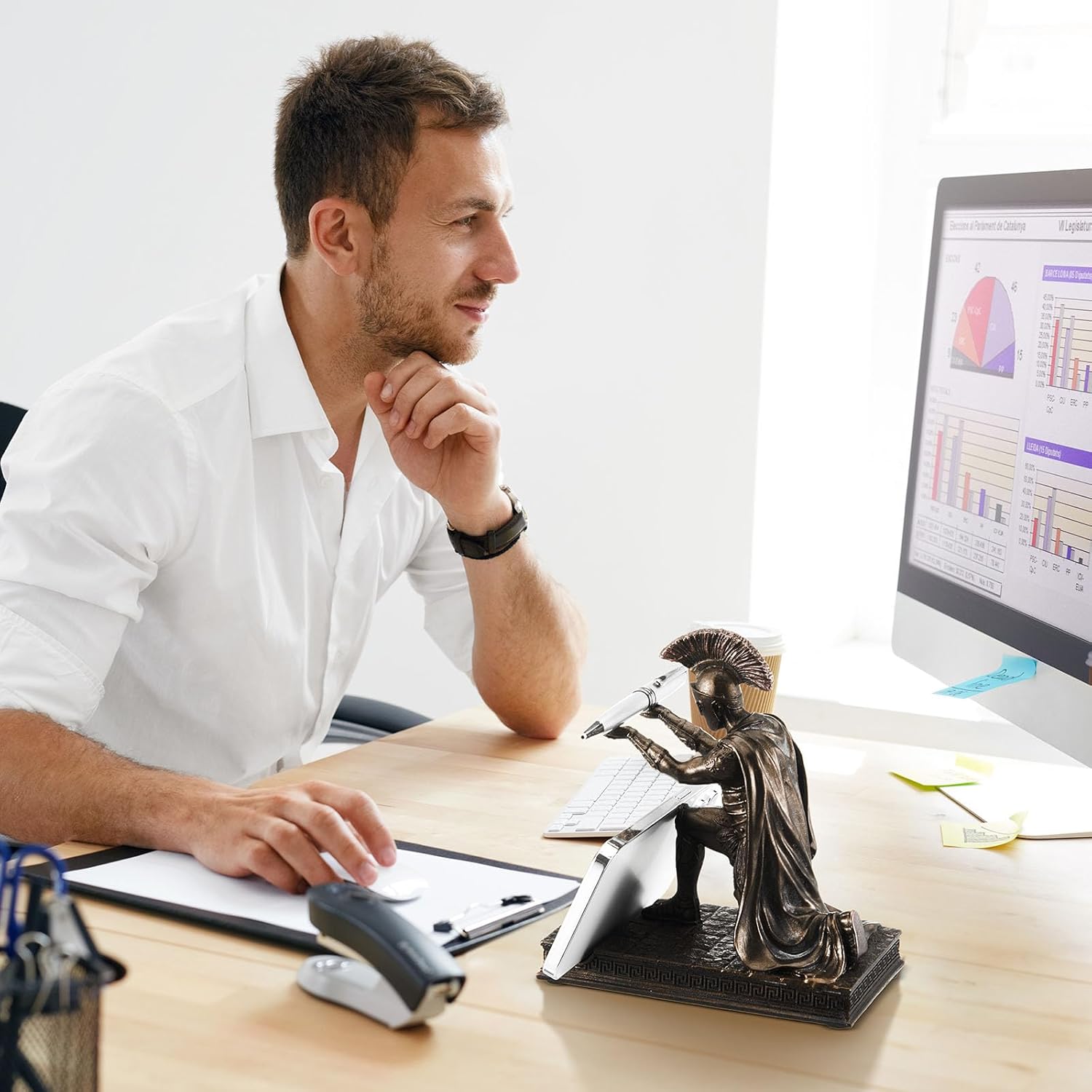 - Sturdy Resin Construction: crafted from resin, the knight pen holder ensures durability and longevity; Its structure reflects a cool office gadget that stands firm on your desk, proving both practical and resilient over time; The bronze finish adds a regal touch, preserving its hue brilliantly, showing that this pen holder for desk arrangements is a robust option that artfully withstands the test of time