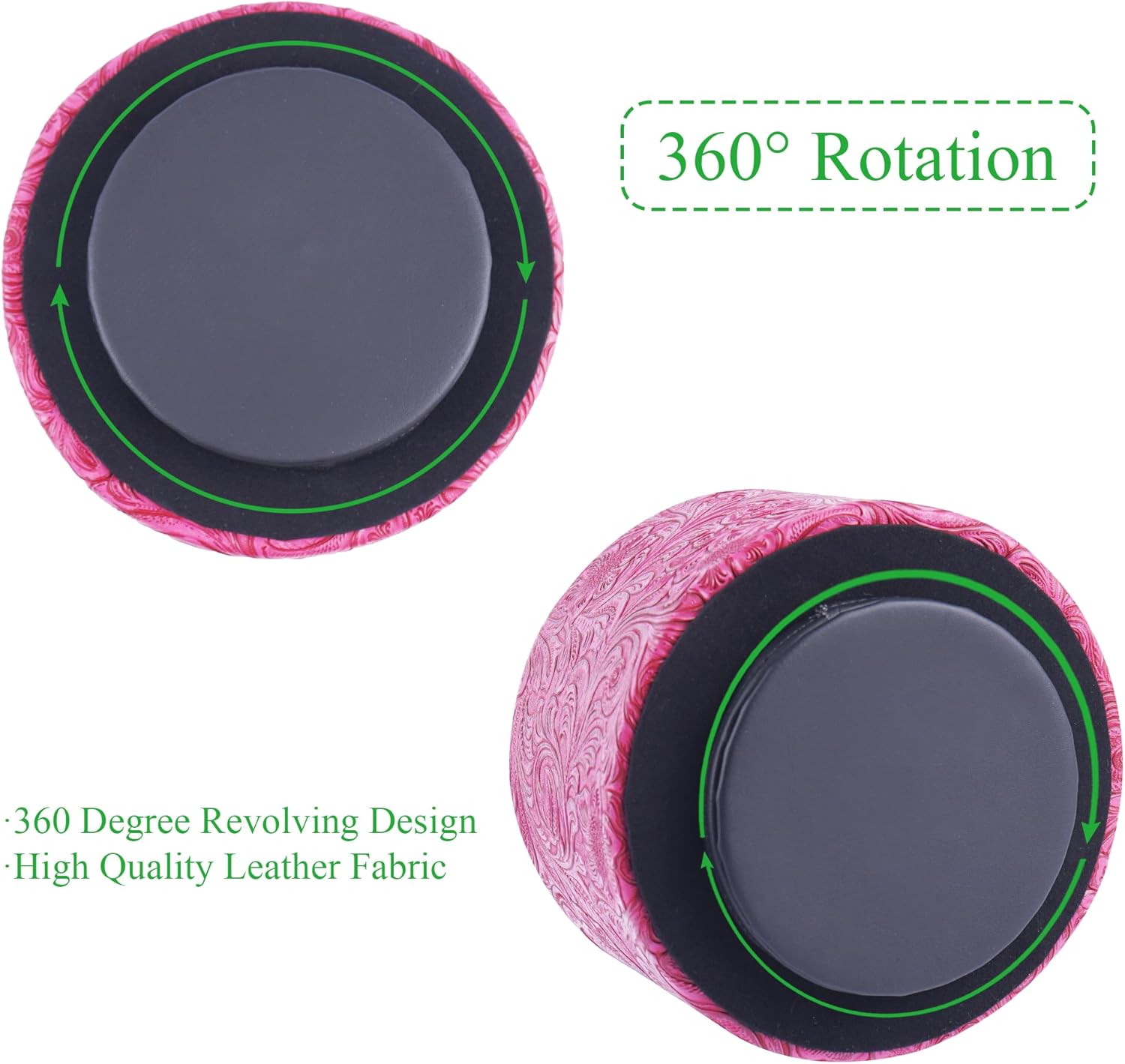 lizimandu Round Leather Art Supply Organizer,Remote Control Holder,360 Degree Spinning,Multi-Functional Pencil Holder,4 Compartments Desktop Stationary Organizer(1-Carved Red2)