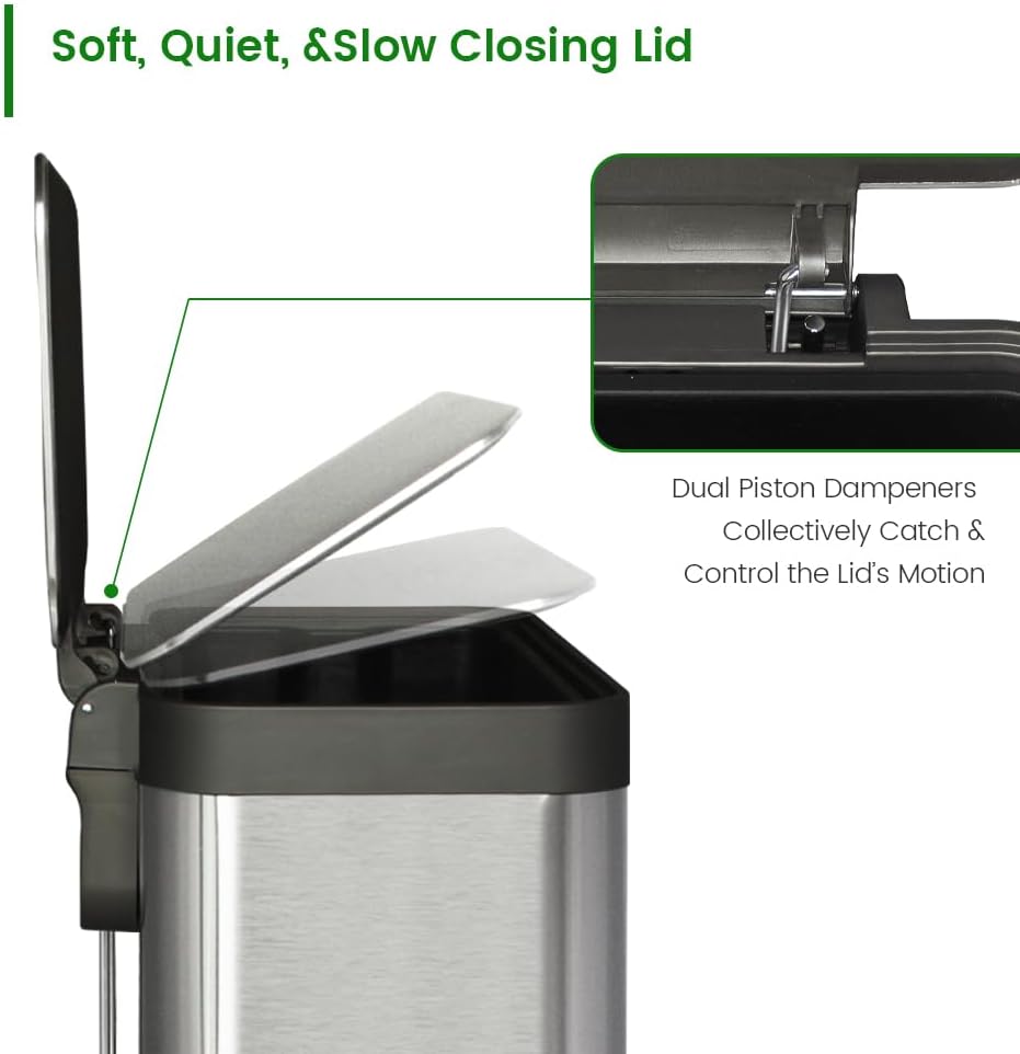 18 Gallon Stainless Steel Step Trash Can with Soft-Close Lid & Stay-Open, Rectangular Kitchen Garbage Bin for Home & Office, Tall Trash Bin No Liner Needed (70 Liter Larger Capacity)