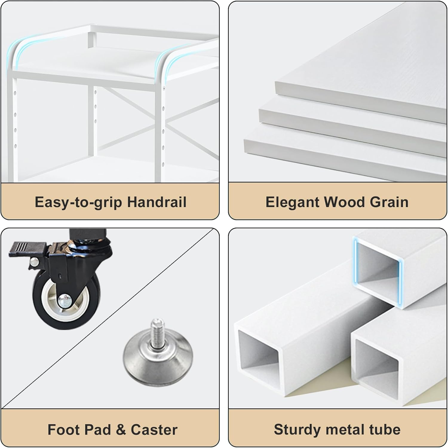 - Large Size & Space: The printer stand measures 20" x 21.7" x 23" and can hold up to 110 lbs. per shelf, ideal for larger laser printers and scanners. The top and bottom shelves are identical, providing ample storage for paper, ink, and supplies to keep your workspace organized.