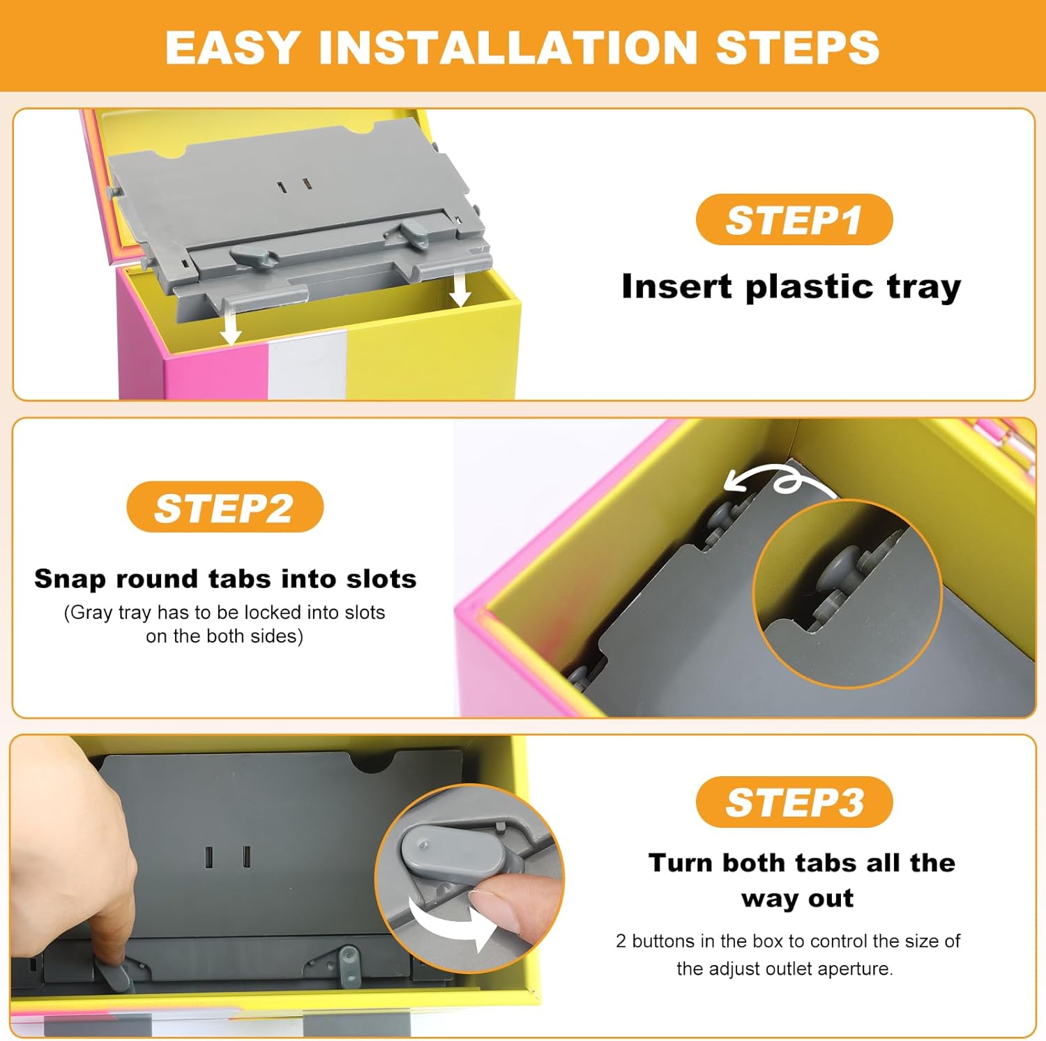 - 【Easy to Use】 you can easily set it up.Angled exit slot prevents jamming, There are 2 buttons in the box to control the size of the adjust outlet aperture. If you turn the button upright, usually only one-pencil-at-a-time access