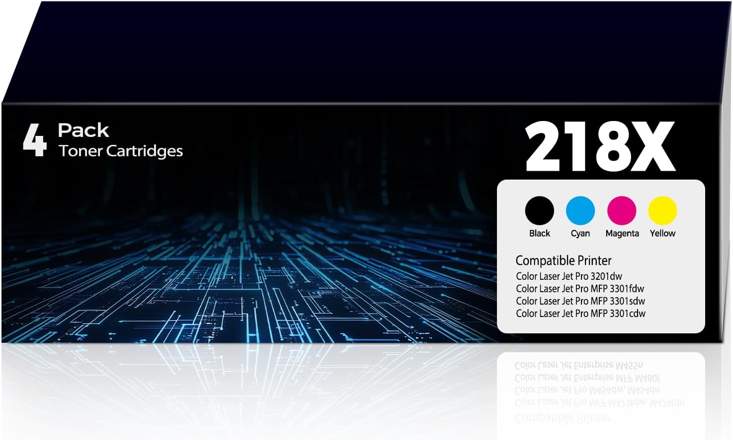 - These 218X Toner Cartridges 4 Pack are compatible with HP 218X toner cartridges 4 pack 218A 218 toner set replacement for HP Color Laser Jet Pro MFP 3301fdw toner cartridges, Color Laser Jet Pro MFP 3301sdw toner cartridges, Color Laser Jet Pro 3201dw toner cartridges, Color Laser Jet Pro MFP 3301cdw toner cartridges