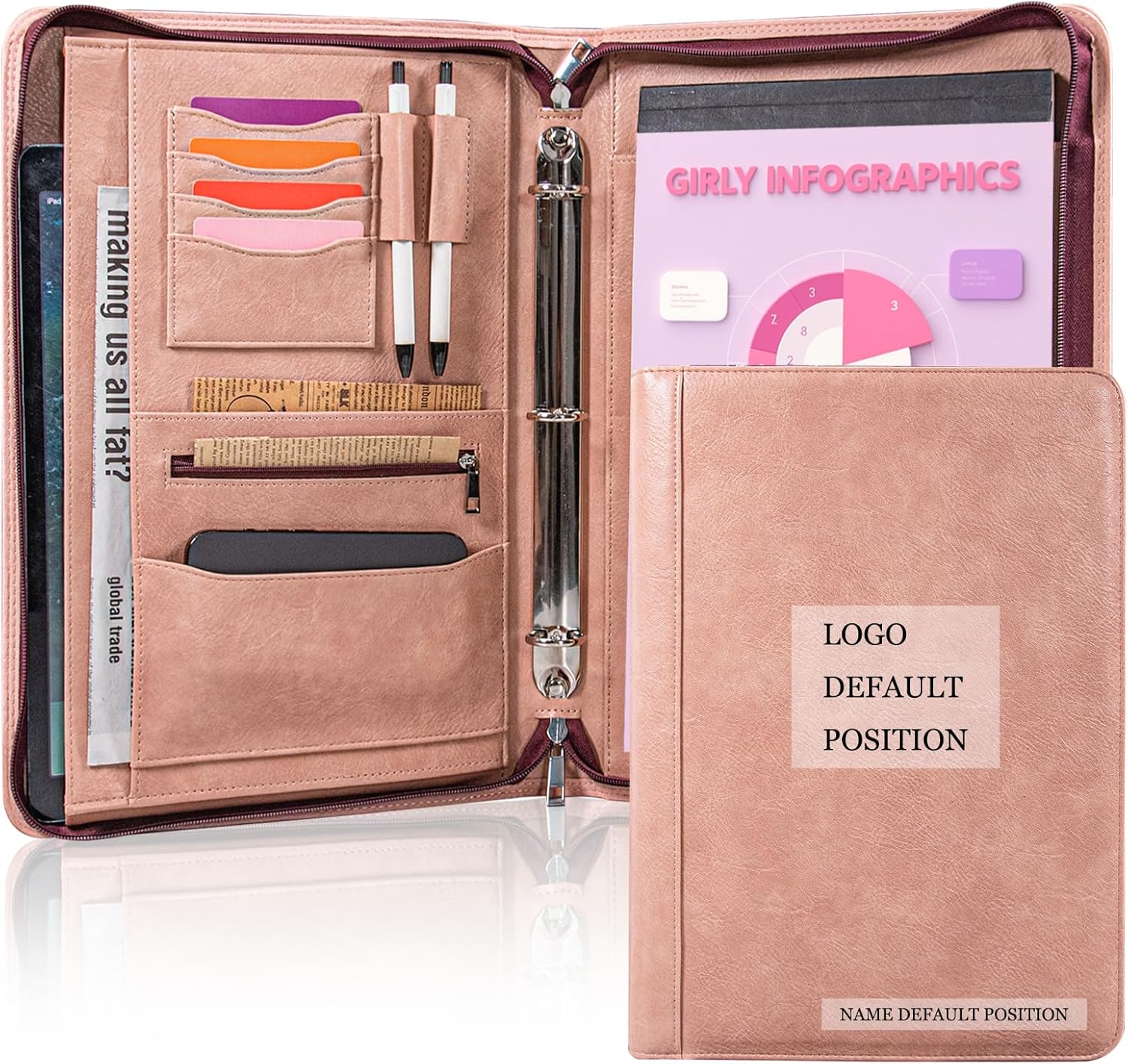 Calfinder Personalized Padfolios Portfolio Binder,3 Ring Leather Binder with Zipper,Professional Padfolios for Women&Men, Business Portfolio Organizer for Resume, Leather Folder for Ipad