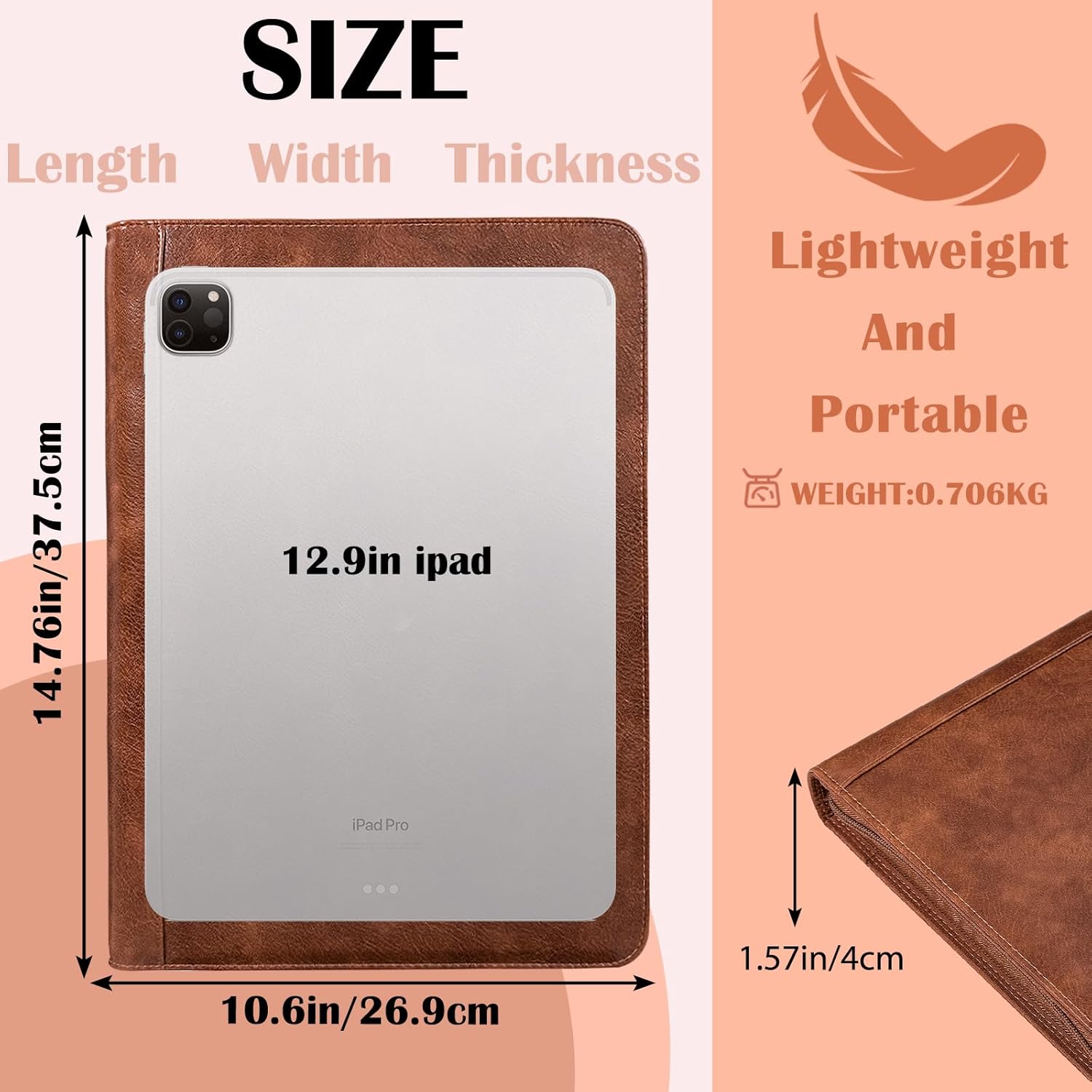 Calfinder Personalized Padfolios Portfolio Binder,3 Ring Leather Binder with Zipper,Professional Padfolios for Women&Men, Business Portfolio Organizer for Resume, Leather Folder for Ipad