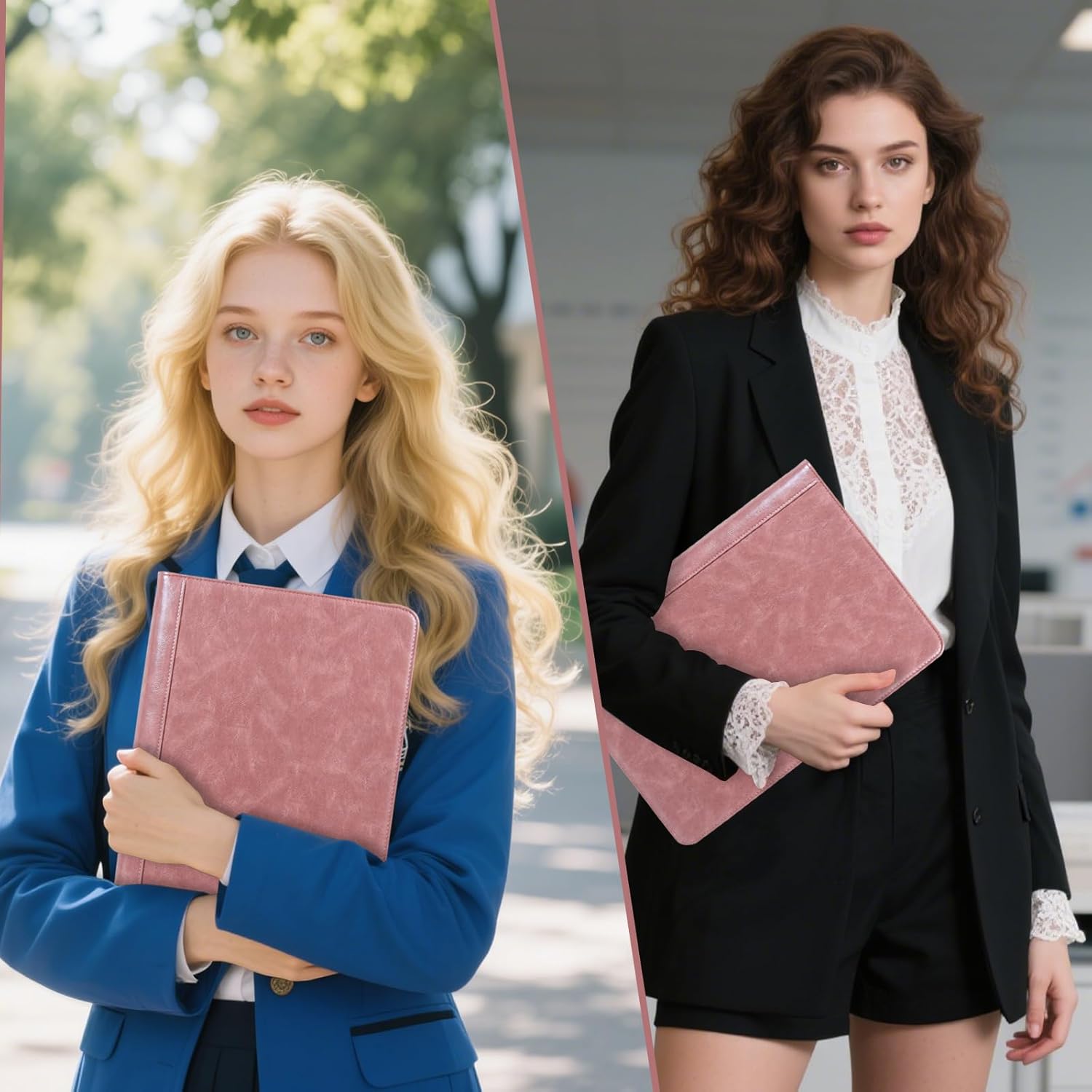 - 【Premium&Stylish-Leather Portfolio Binder】 This personalized portfolio organizer is handmade from leather, waterproof and durable while balancing elegance and fashion. Brown, vintage brown and black portfolio for men are simple and atmospheric. The padfolio for women with rose gold and deep blue print is elegant and exquisite. The Calfinder business portfolio is the perfect gift choice for lawyers, teachers, graduates, employees, and any other professionals.