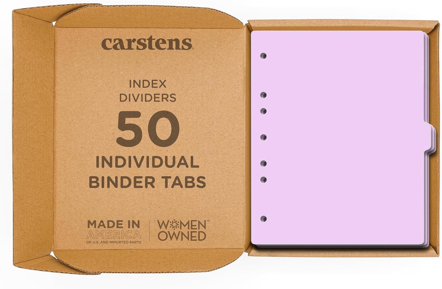 Carstens - Heavy Duty Plastic Ring Binder Dividers, Side Tab, 1/9 Cut, Tab 5 Position, US Letter, Lavender, Case of 50, (2618-14CS) - Ideal Medical Chart Dividers or Index Tabs for 3 Ring Binders