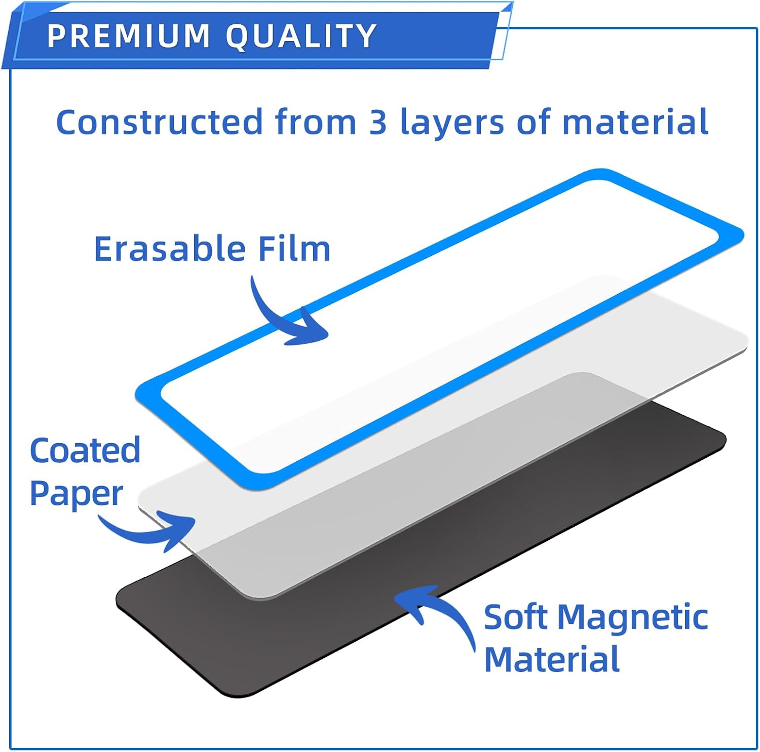 - Super Strong Magnetism: Our dry erase magnetic labels features a high-quality full magnetic strip backing that securely adheres to any flat ferrous metal surface, ensuring it won't slip, fall, or scratch surfaces during use