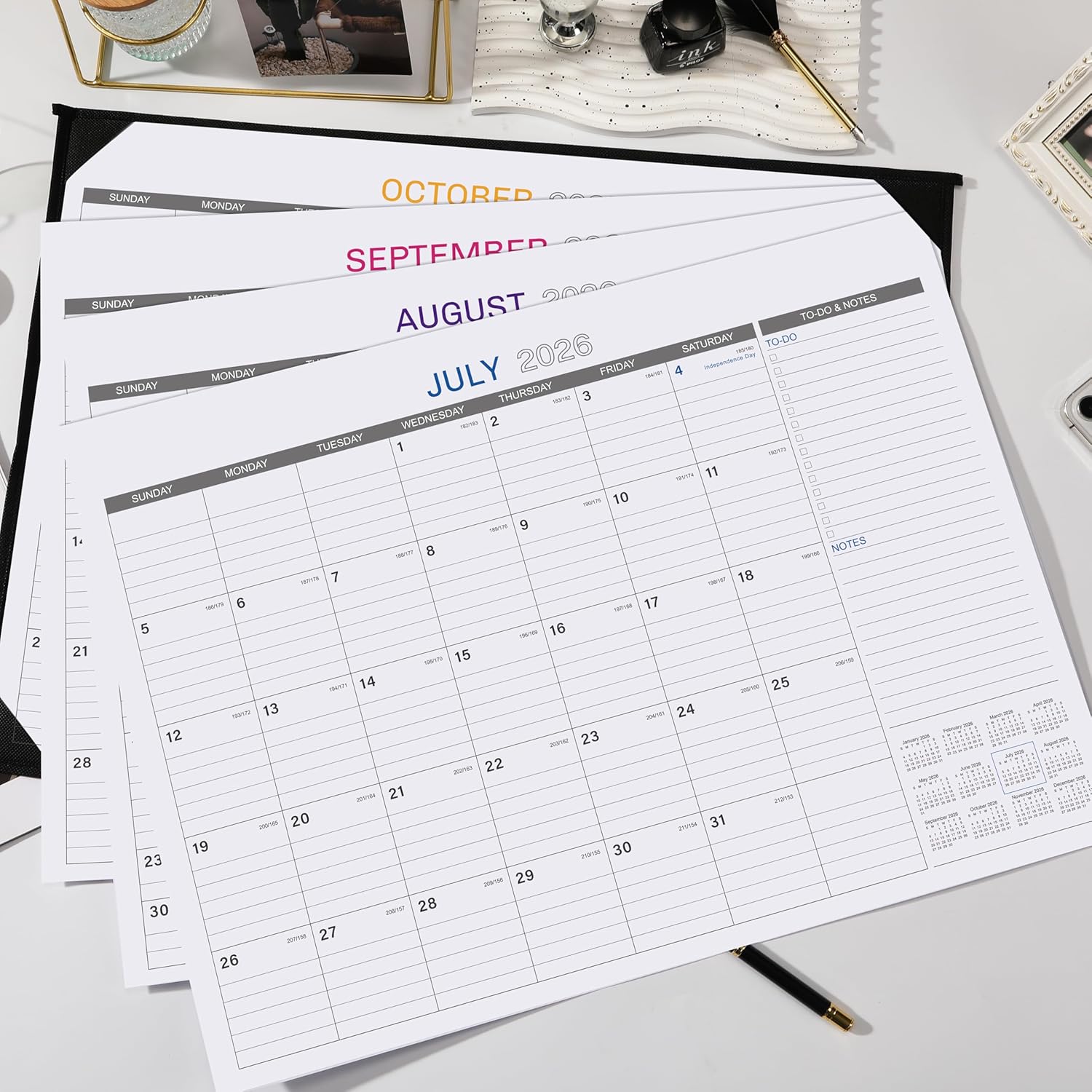 - High Quality Thick Paper - Our 2026 large desk/wall calendar includes 12 high-quality 100 GSM papers and harder shell paper. Desk calendar 2026 is made of high-quality, thick paper that is ink proof and prevents feathering and water seepage.