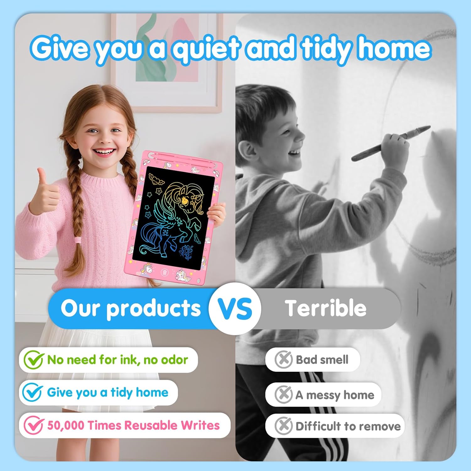 - Safe & Eye - Friendly Design : The tablet is equipped with a high - quality LCD screen that has no blue light or radiation, protecting your child's eyesight. It is a paperless and eco - friendly option, allowing kids to enjoy endless creative fun without the worries associated with traditional drawing materials.