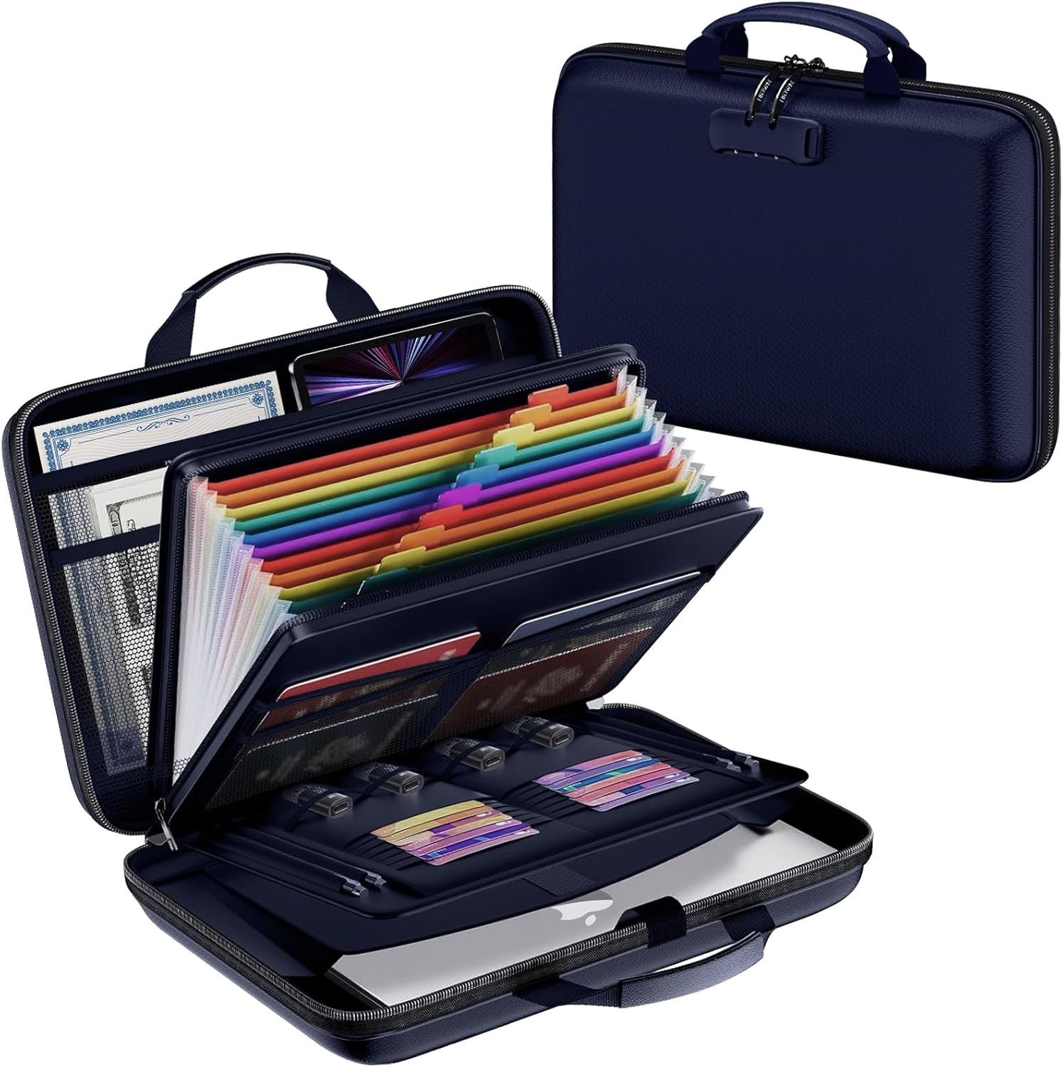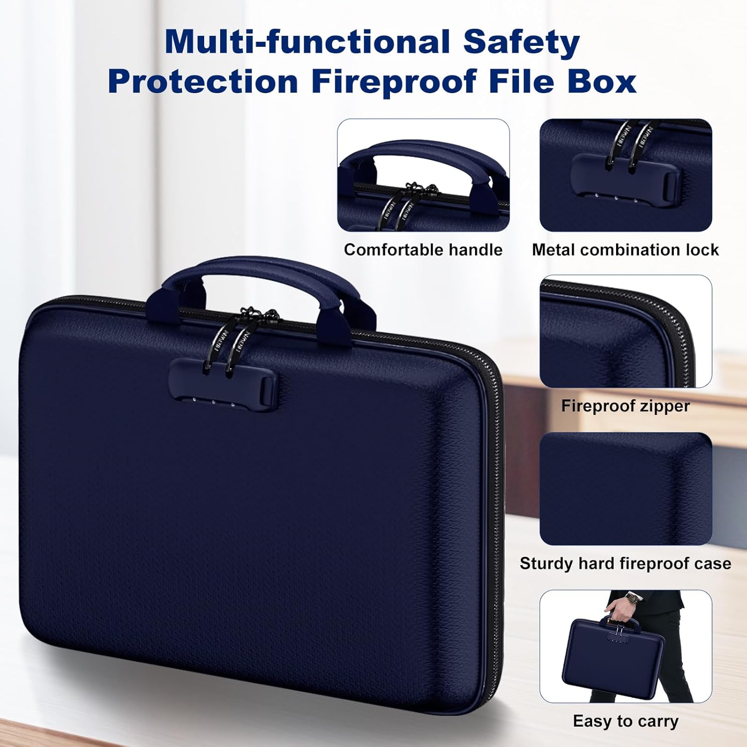 - Double Protection With Handle: Our fireproof file organizer feature mechanical combination locks to provide a secure for your important document. Upgraded double-opening metal fireproof zipper is easy to open and close, no need to worry about fire getting inside the file box through the zipper. Comfortable and sturdy leather carrying handles and stylish appearance, perfect for home, work, travel, business.