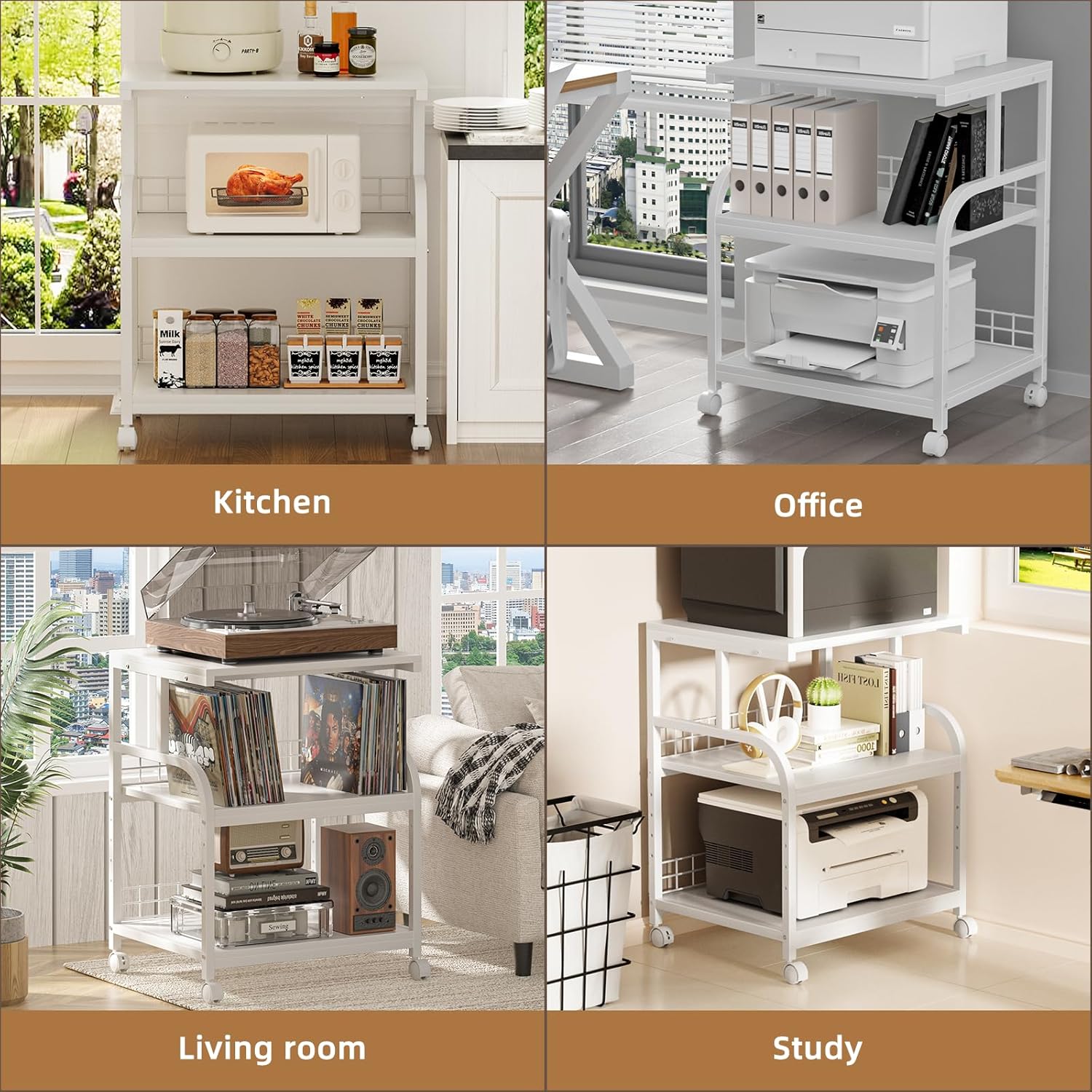 - Includes Casters and Adjusting Feet: The four wheels of the large printer table for home office with storage can rotate 360 degrees, and two of them can be locked to provide greater security for your printer and other office equipments.We also offer four solid adjusting feet that you can replace whenever you need them.