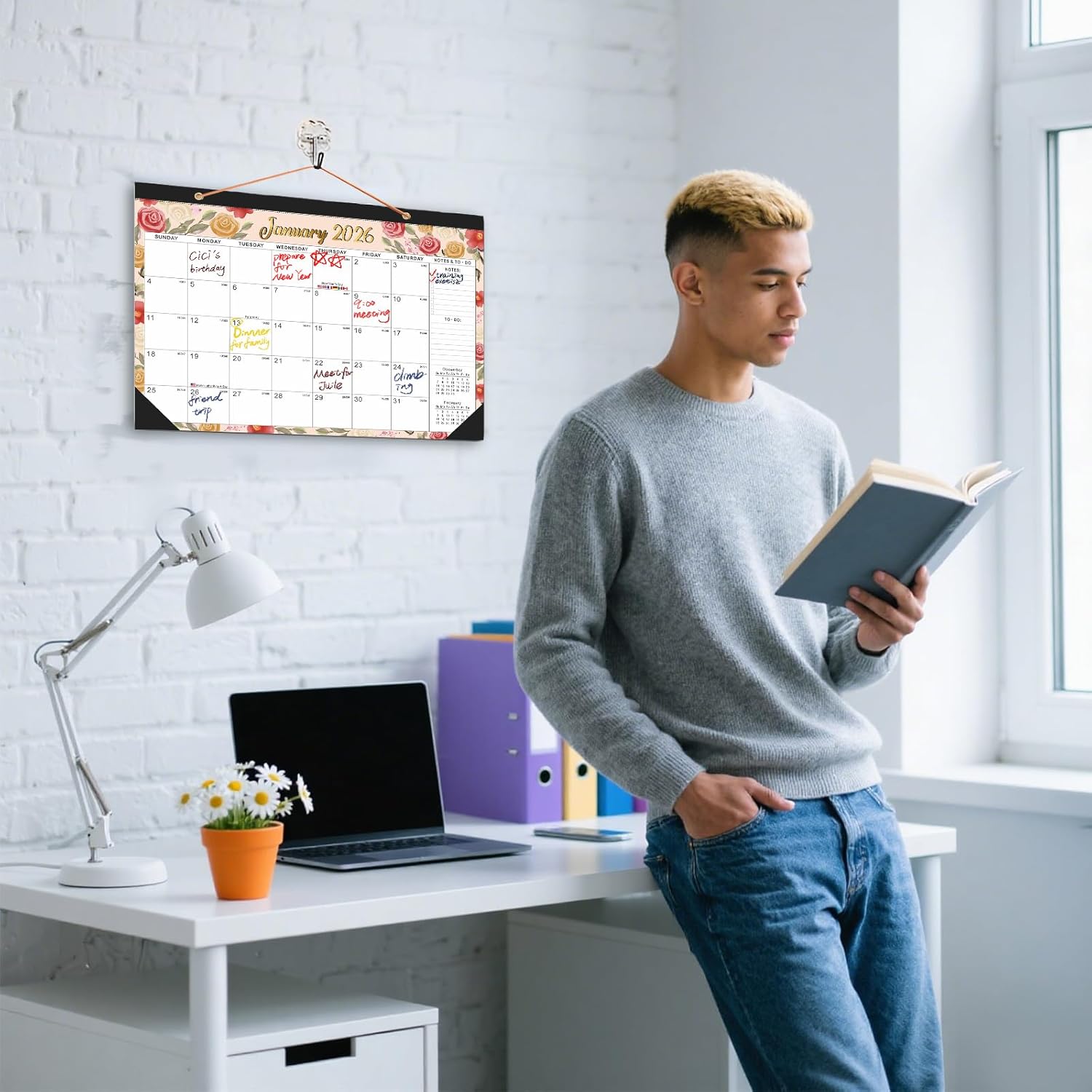 2026-2027 18-Month Large Desk Calendar with 2 Stickers & Hanging Rope - 17"x12" Watercolor Floral Desktop or Wall Calendar | Holiday Marks & Year Countdown | for Office, Homeschool, Teacher Planning (Jan 2026 - Jun 2027)