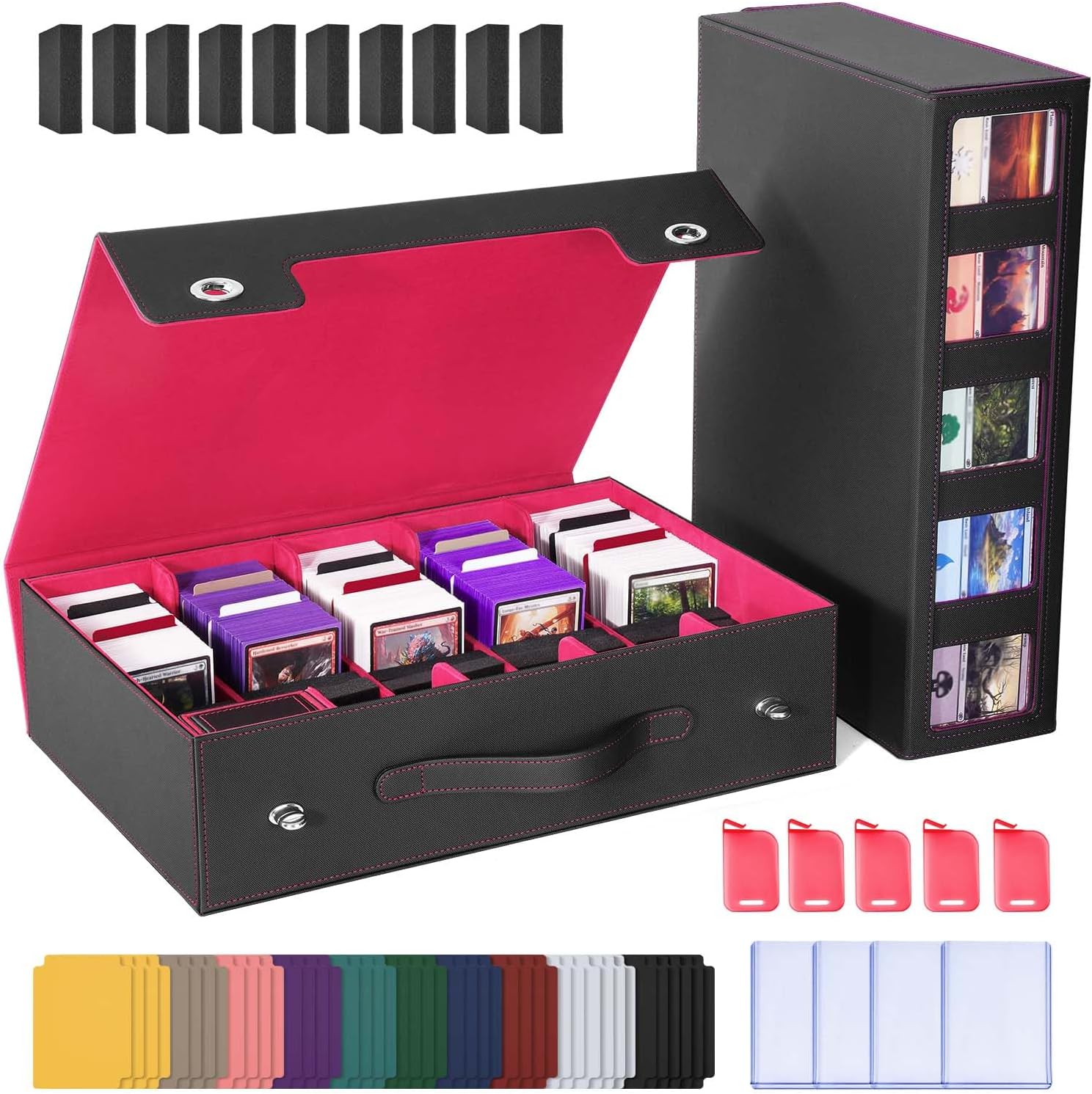 Trading Card Storage Box with Commander Display, 5 Row Magic Card Box with Handle & Aluminum Alloy Locking for 3900+ Unsleeved Cards Suits for MTG PTCG TCG Sports Cards (Black Red)