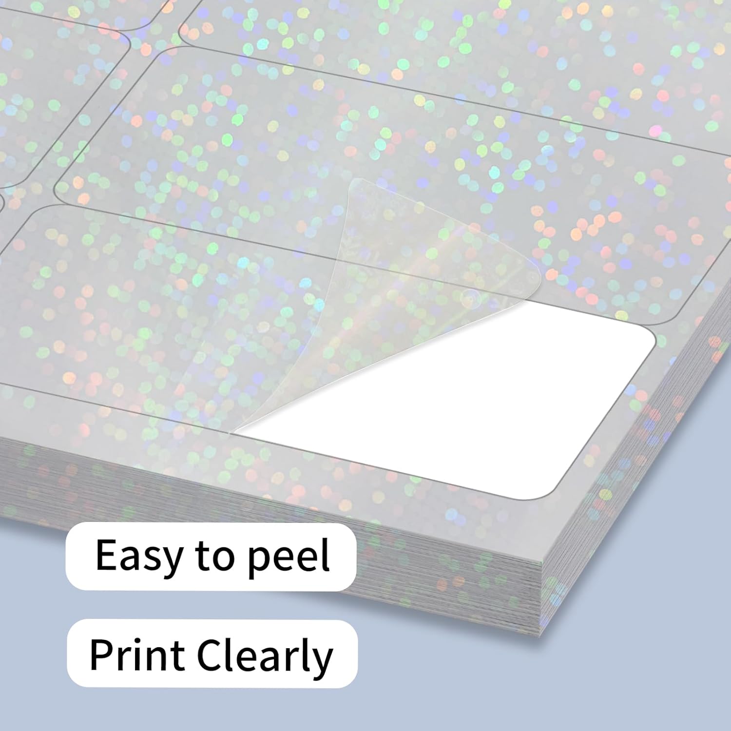 STARLIBOO Transparent Stickers Labels -1" x 2-5/8" Clear Address Labels Mailing Stickers for Laser/Inkjet Printer 8.5"×11"- 20 Sheet (Clear Holographic Dot)